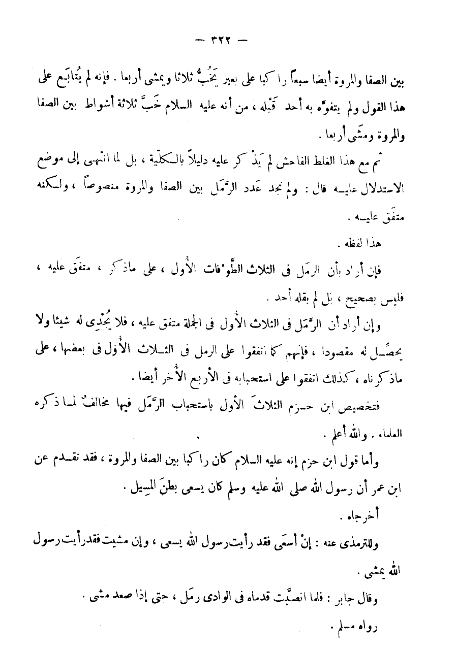 وَأَمَّا قَوْلُ ابْنِ حَزْمٍ إِنَّه عَلَيْهِ السَّلَام كَانَ رَاكِبًا بَيْنَ الصَّفَا وَالْمَرْوَةِ، فَقَدْ تَقَدَّمَ عَنِ ابْنِ عُمَرَ أَنَّ رَسُولَ اللَّهِ صَلَّى اللَّهُ عَلَيْهِ وَسَلَّمَ كَانَ يَسْعَى بَطْنَ الْمَسِيلِ.