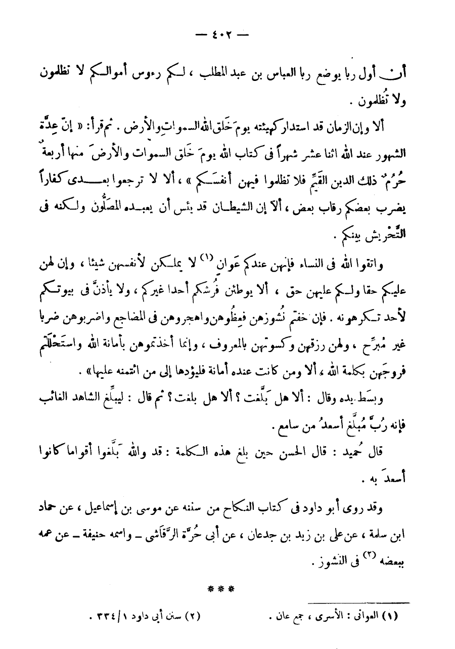 أَنَّ أَوَّلَ رِبًا يُوضَعُ رِبَا الْعَبَّاسِ بْنِ عبد المطب، لَكُمْ رُءُوسُ أَمْوَالِكُمْ لَا تَظْلِمُونَ وَلَا تُظْلَمُونَ.