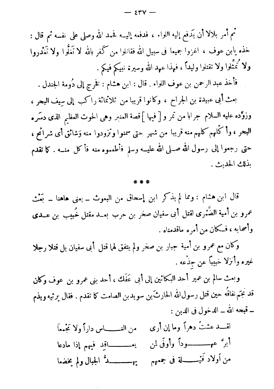 قَالَ: ابْنُ هِشَامٍ: فَخَرَجَ إِلَى دُومَةِ الْجَنْدَلِ.