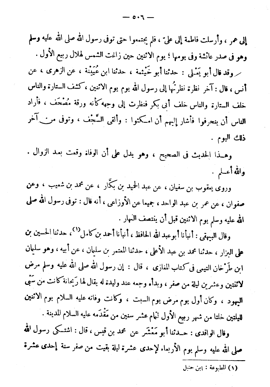 وَهَذَا الْحَدِيثُ فِي الصَّحِيحِ، وَهُوَ يَدُلُّ عَلَى أَنَّ الْوَفَاةَ وَقَعَتْ بَعْدَ الزَّوَالِ.