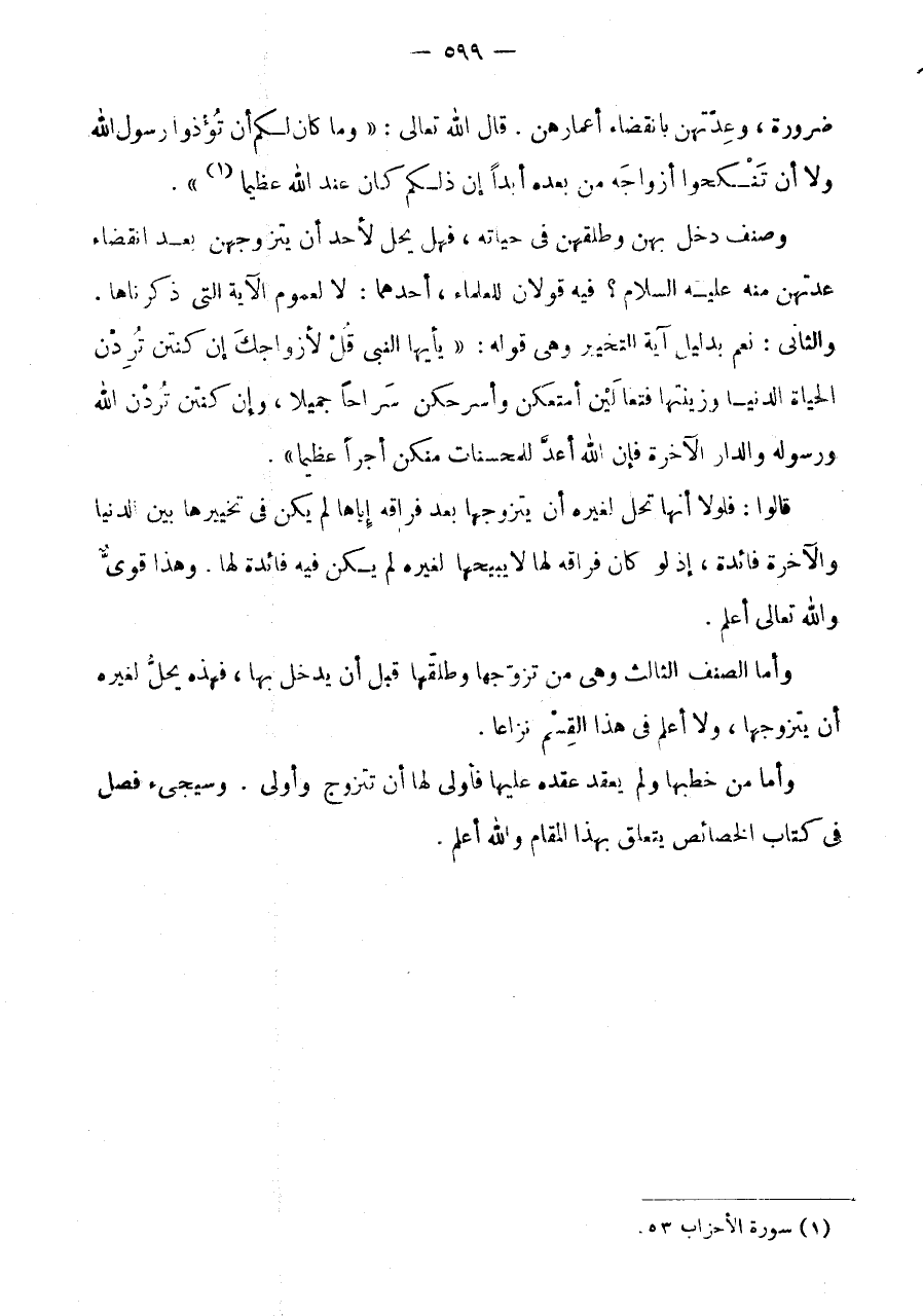 قَالُوا: فَلَوْلَا أَنَّهَا تَحِلُّ لِغَيْرِهِ أَنْ يَتَزَوَّجَهَا بَعْدَ فِرَاقِهِ إِيَّاهَا لَمْ يَكُنْ فِي تَخْيِيرِهَا بَيْنَ الدُّنْيَا وَالْآخِرَةِ فَائِدَةٌ، إِذْ لَوْ كَانَ فِرَاقُهُ لَهَا لَا يُبِيحُهَا لِغَيْرِهِ لَمْ يَكُنْ فِيهِ فَائِدَةٌ لَهَا.