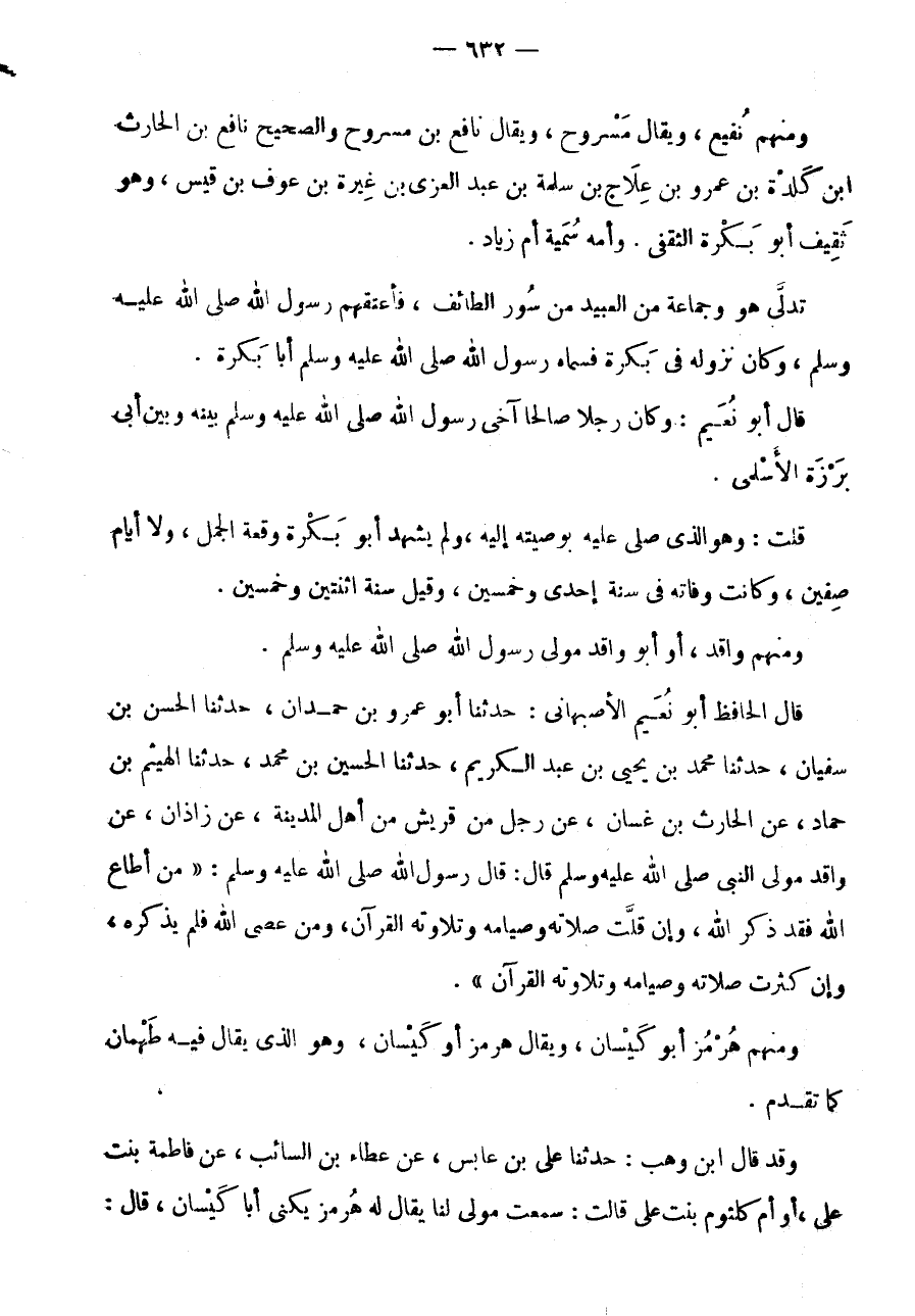 وَمِنْهُمْ نُفَيْعٌ، وَيُقَالُ مَسْرُوحٌ، وَيُقَالُ نَافِعُ بْنُ مسروح وَالصَّحِيح نَافِع بن الْحَارِث ابْن كلدة بن عَمْرو بن علاج بن سَلمَة بن عَبْدِ الْعُزَّى بْنِ غِيرَةَ بْنِ عَوْفِ بْنِ قيس، وَهُوَ ثَقِيفٌ أَبُو بَكْرَةَ الثَّقَفِيُّ.