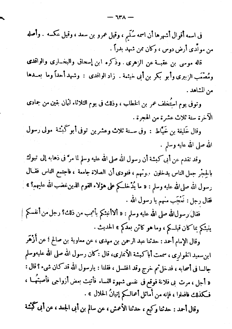 وَقَالَ أَحْمَدُ: حَدثنَا وَكِيع، حَدثنَا الْأَعْمَشُ، عَنْ سَالِمِ بْنِ أَبِي الْجَعْدِ، عَنْ أَبى كَبْشَة