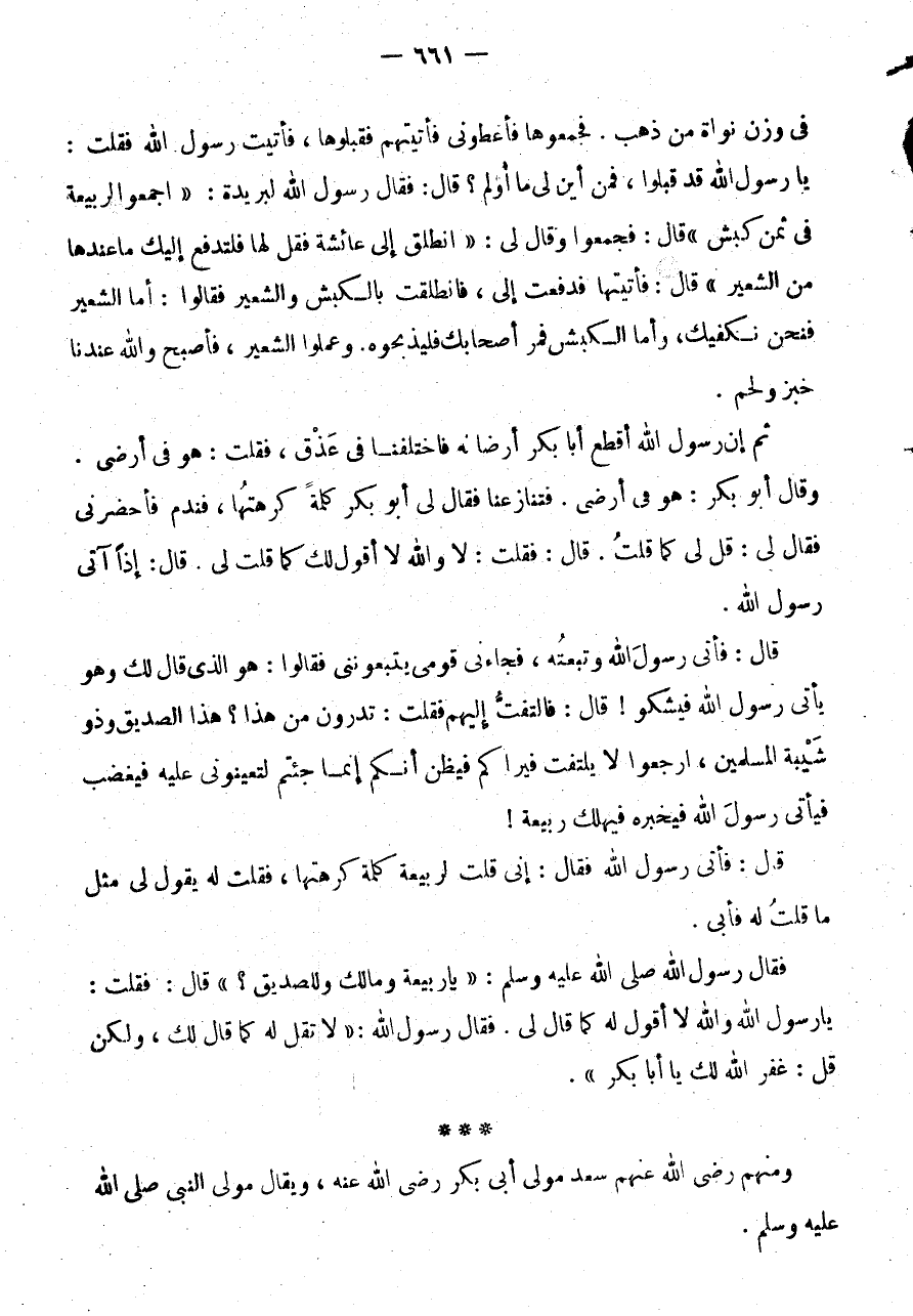 فَقَالَ رَسُولُ اللَّهِ صَلَّى اللَّهُ عَلَيْهِ وَسَلَّمَ: " يَا ربيعَة وَمَالك وللصديق؟ " قَالَ: فَقلت: يارسول الله وَاللَّهِ لَا أَقُولُ لَهُ كَمَا قَالَ لِي.