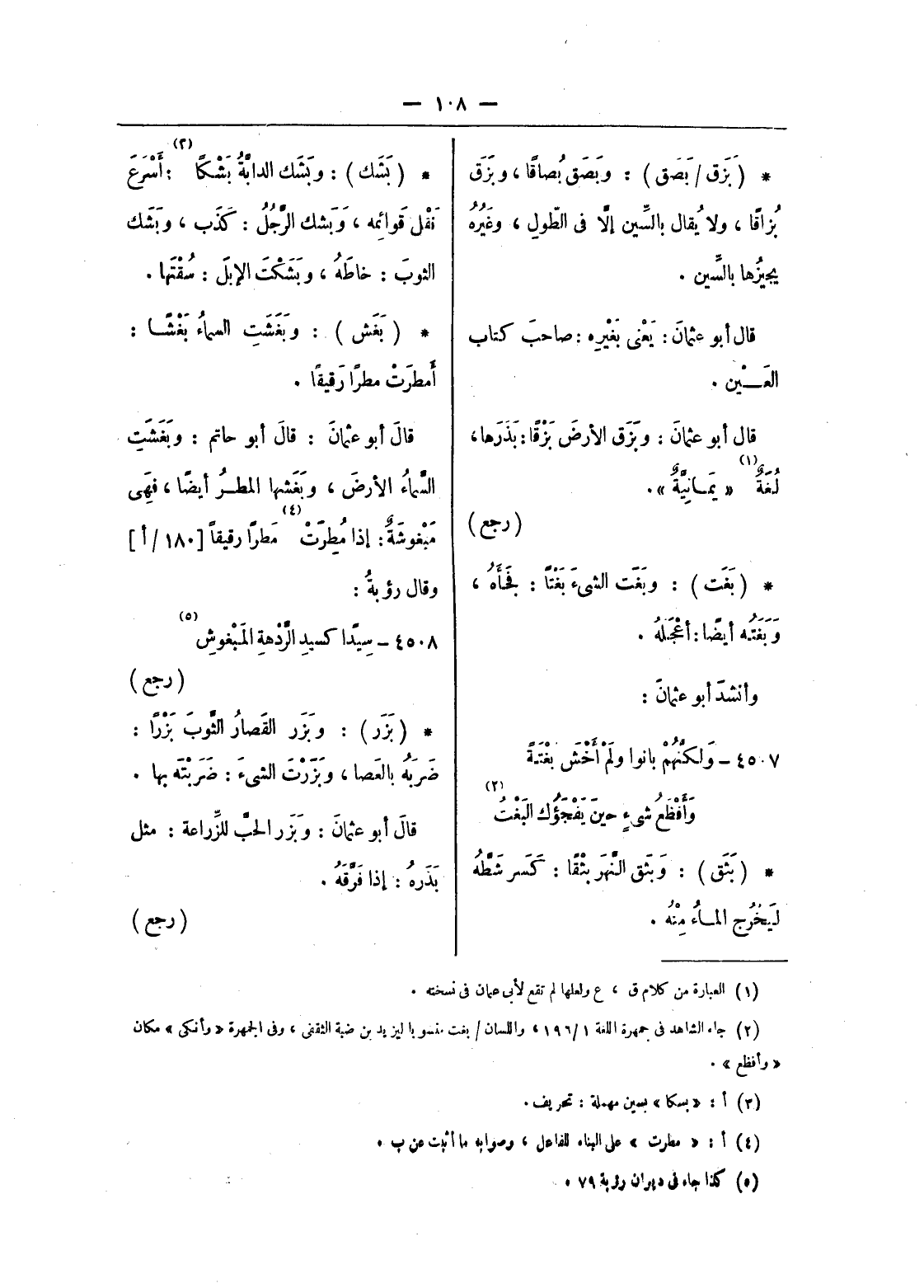 قال أبو عثمان: وبزق الأرض بزقا: بذرها، لغة (¬1) «يمانيّة».