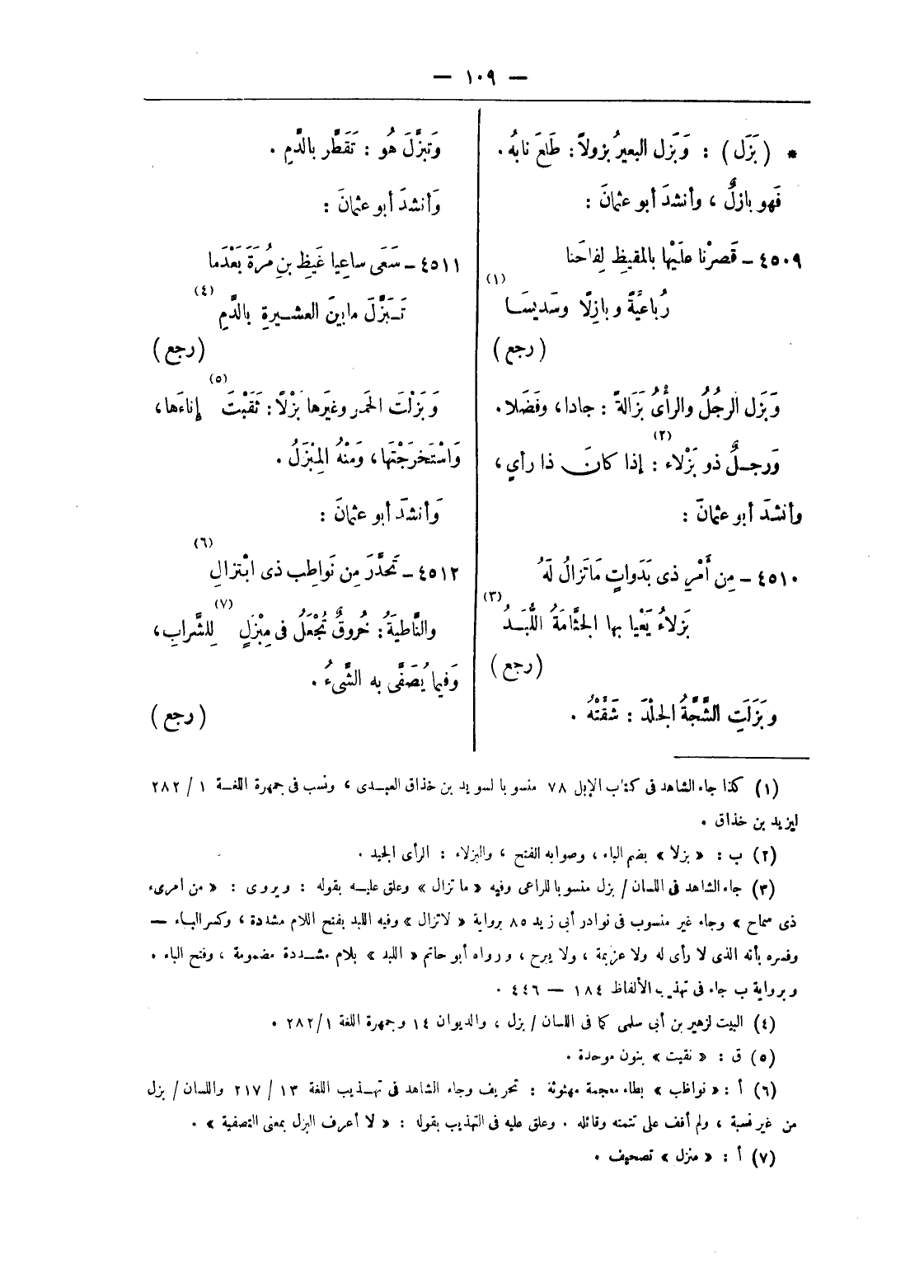 (¬6) أ: «نواظب» بطاء معجمة مهثوثة: تحريف وجاء الشاهد فى تهذيب اللغة 13/ 217 واللسان/ بزل من غير نسبة، ولم أقف على تتمته وقائله. وعلق عليه فى التهذيب بقوله: «لا أعرف البزل بمعنى التصفية».
