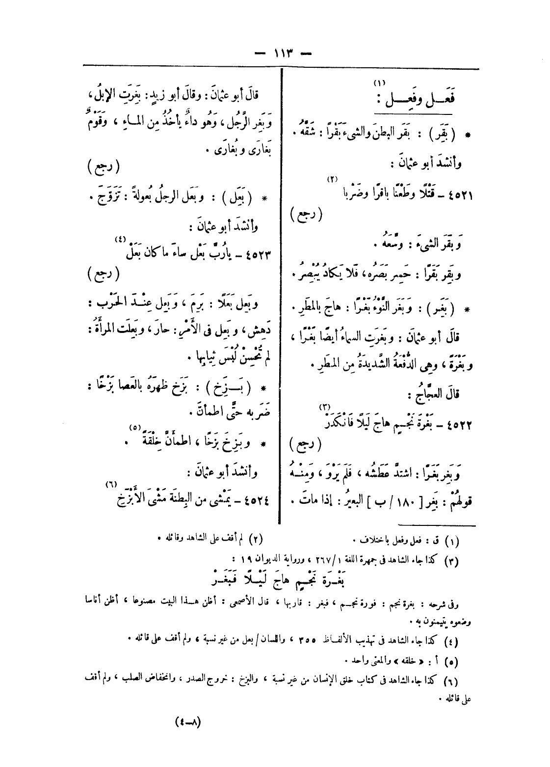 وفى شرحه: بغرة نجم: فورة نجم، فبغر: قاربها، قال الأصمعى: أظن هذا البيت مصنوعا، أظن أناسا وضعوه يتيمنون به.