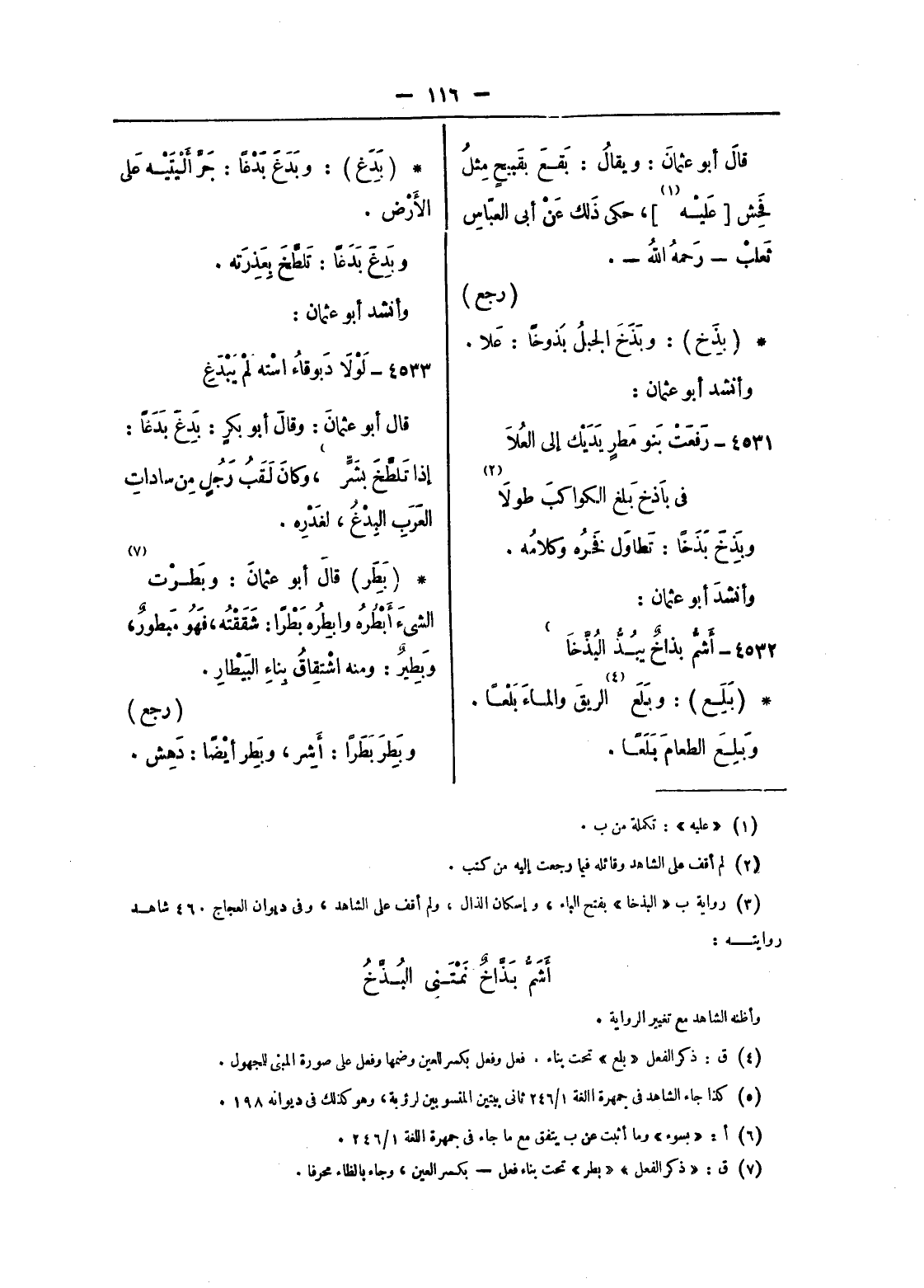 قال أبو عثمان: وقال أبو بكر: بدغ بدغا: