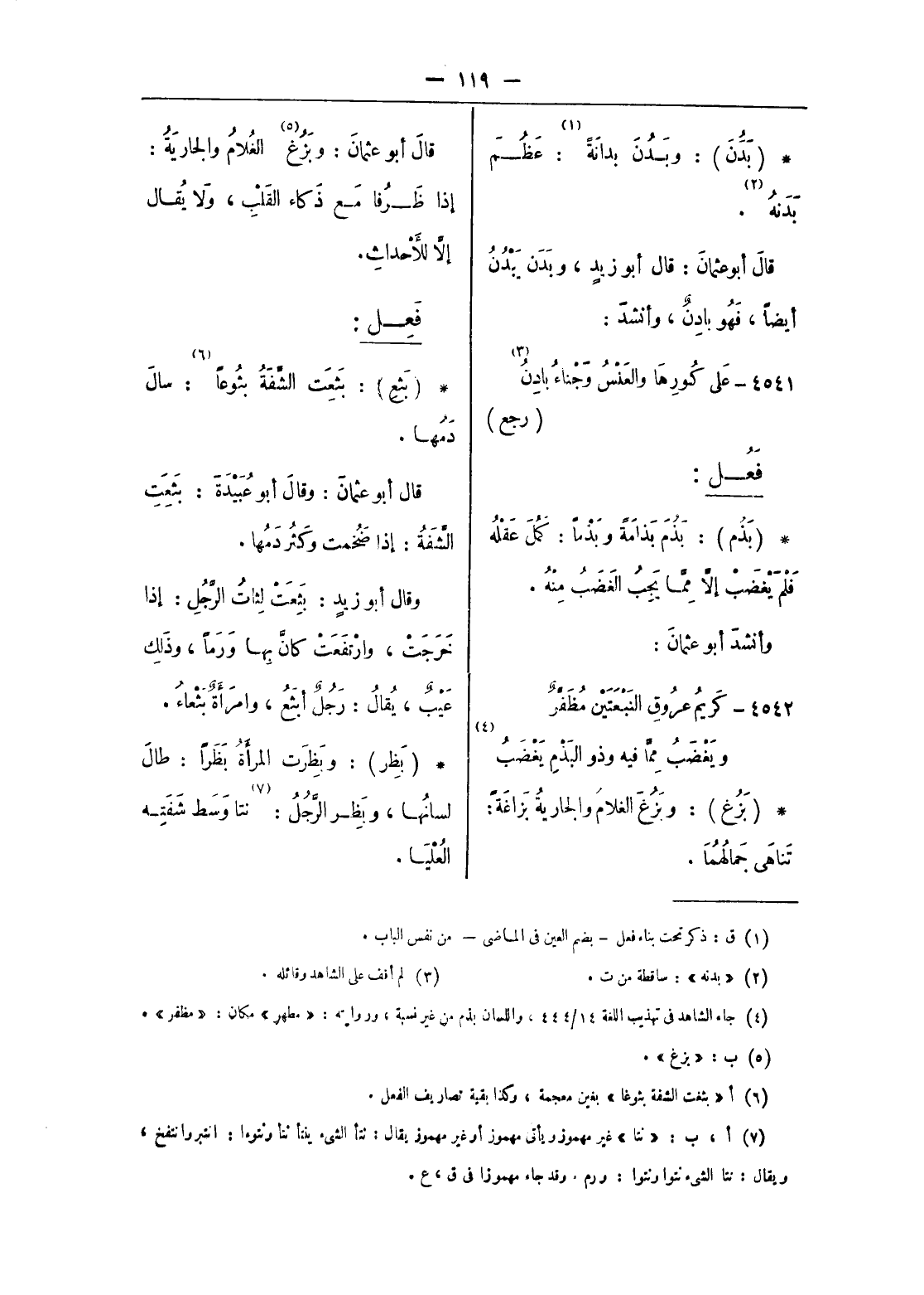 قال أبو عثمان: قال أبو زيد، وبدن يبدن أيضا، فهو بادن، وأنشد: