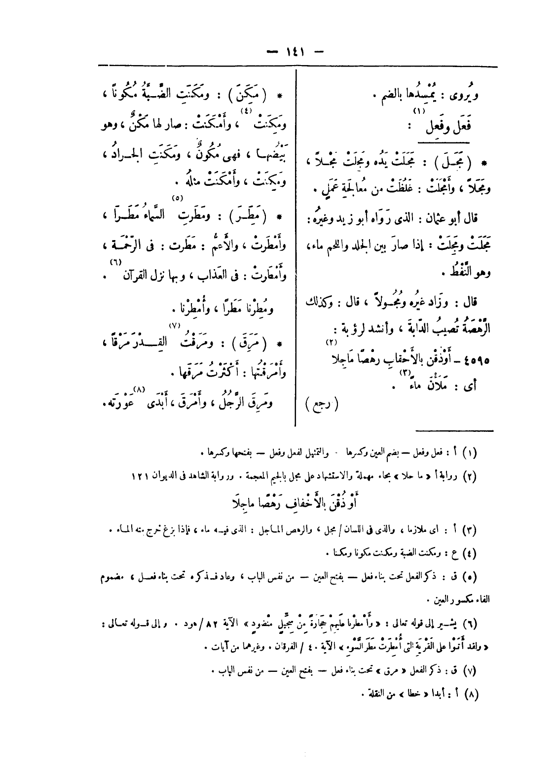 (¬5) ق: ذكر الفعل تحت بناء فعل - بفتح العين - من نفس الباب، وعاد فذكره تحت بناء فعل، مضموم الفاء مكسور العين.