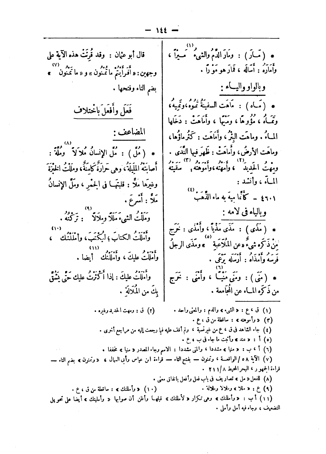(¬8) للفعل «مل» تصاريف فى باب فعل وأفعل باتفاق معنى.