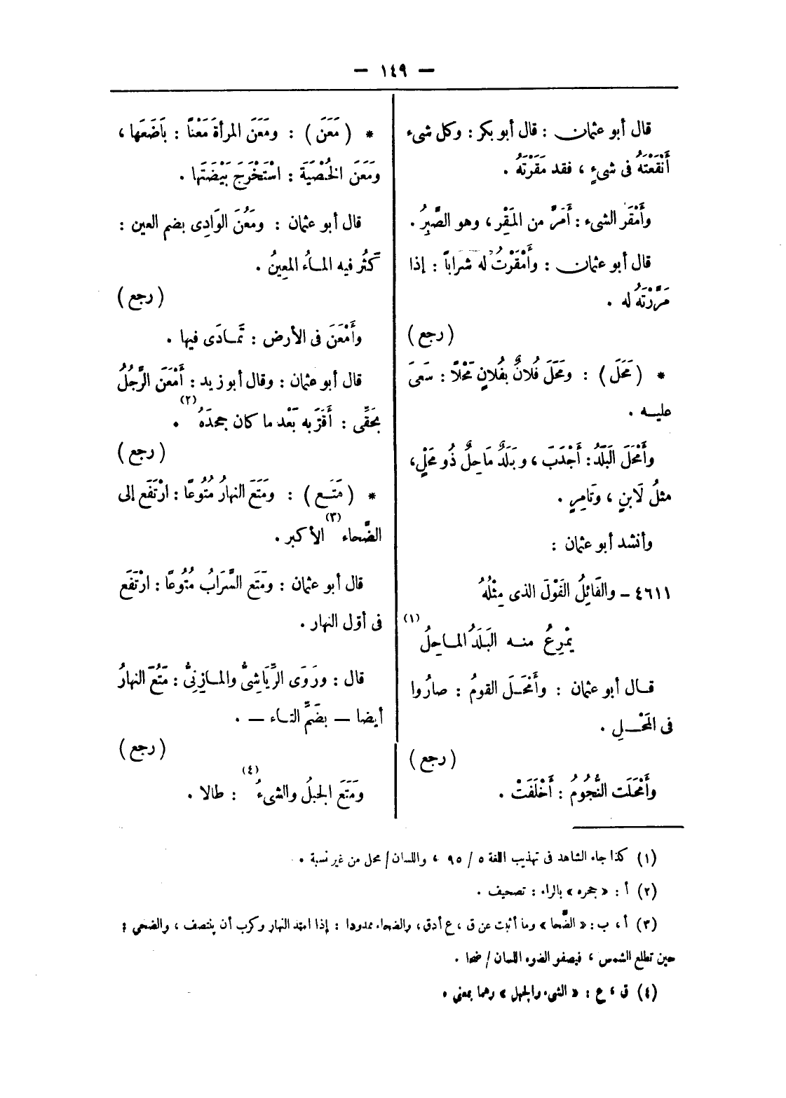 قال أبو عثمان: وقال أبو زيد: أمعن الرّجل بحقّى: أقرّ به بعد ما كان جحده (¬2).