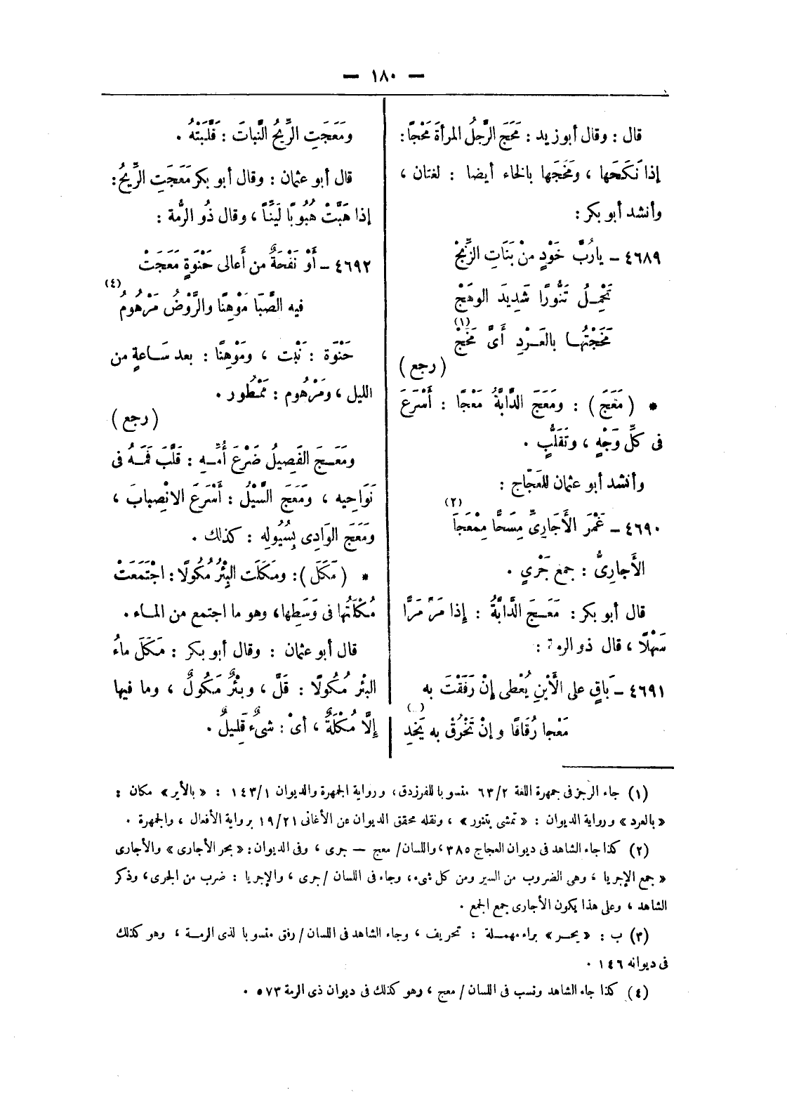 (¬4) كذا جاء الشاهد ونسب فى اللسان/ معج، وهو كذلك فى ديوان ذى الرمة 573.