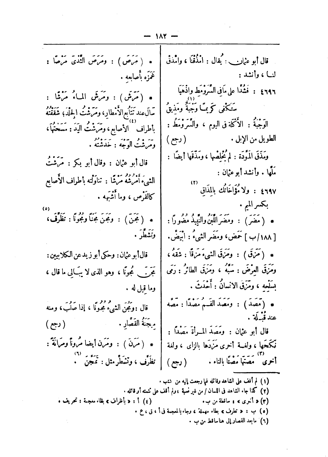 قال أبو عثمان: يقال: امذقنا، وامذق لنا، وأنشد: