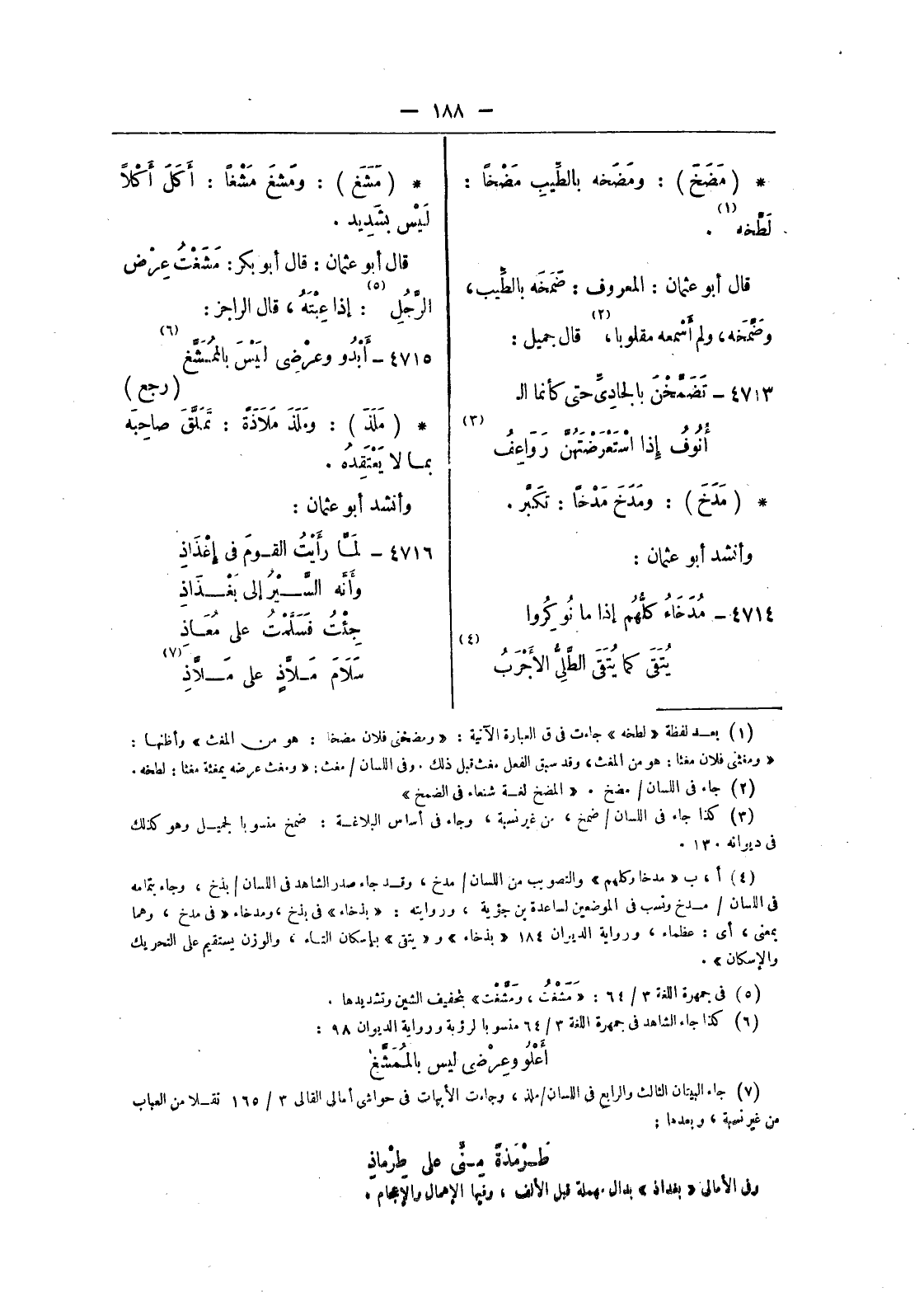 (¬7) جاء البيتان الثالث والرابع فى اللسان/ ملذ، وجاءت الأبيات فى حواشى أمالى القالى 3/ 165 نقلا من العباب من غير نسبة، وبعدها:
