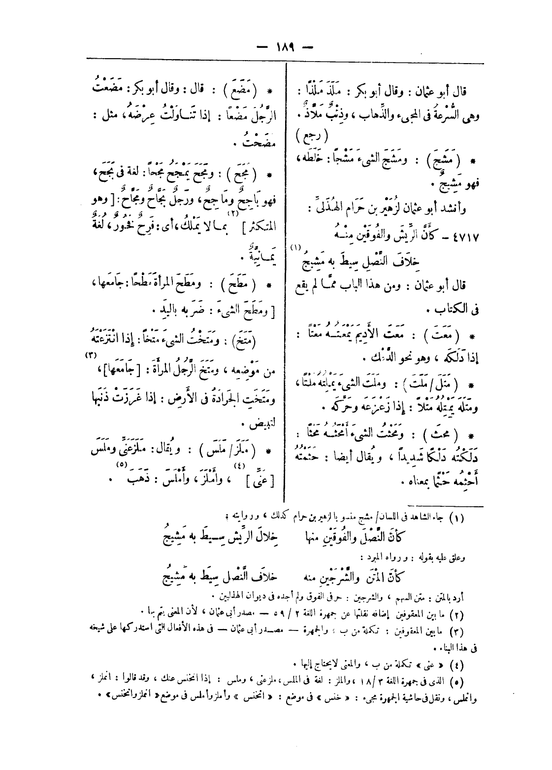 (¬2) ما بين المعقوفين إضافه نقلتها عن جمهرة اللغة 2/ 59 - مصدر أبى عثمان، لأن المعنى يتم بها.