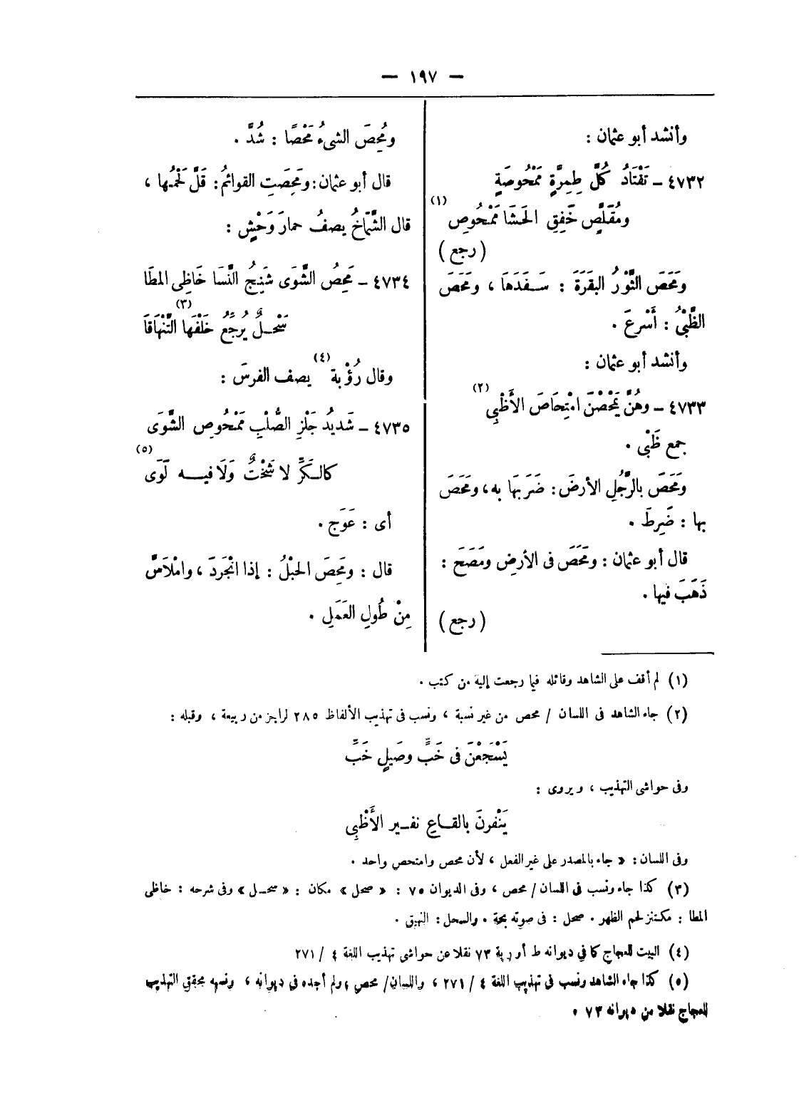 (¬5) كذا جاء الشاهد ونسب فى تهذيب اللغة 4/ 271، واللسان/ محص، ولم أجده فى ديوانه، ونسبه محقق التهذيب للعجاج نقلا عن ديوانه 73.
