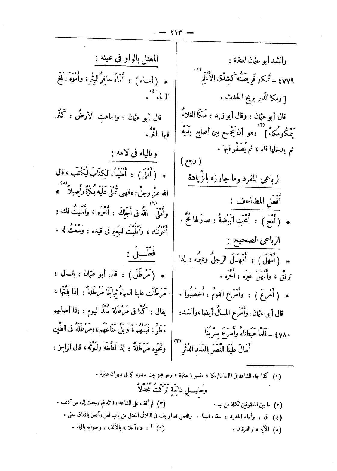 (¬4) ق: وأماه الحديد: سقاه الماء. وللفعل تصاريف فى الثلاثى المعتل من باب فعل وأفعل باتفاق معنى.