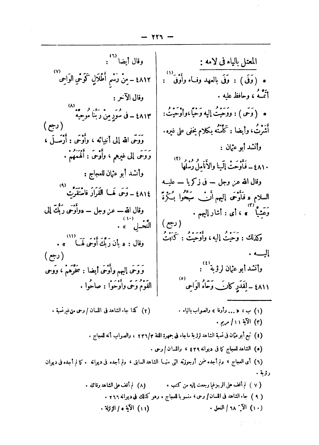(¬9) جاء الشاهد فى اللسان/ وحى، منسوبا للعجاج. وهو كذلك فى ديوانه 266.