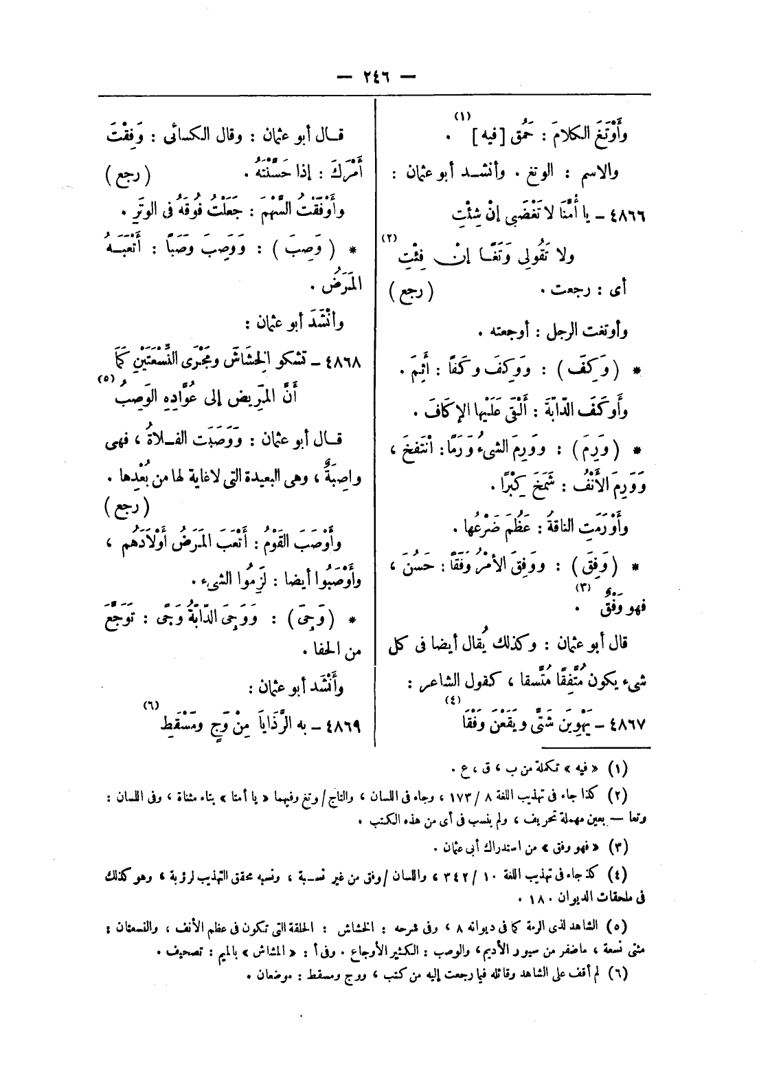 (¬4) كذا جاء فى تهذيب اللغة 10/ 342، واللسان/ وفق من غير نسبة، ونسبه محقق التهذيب لرؤبة، وهو كذلك فى ملحقات الديوان 180.