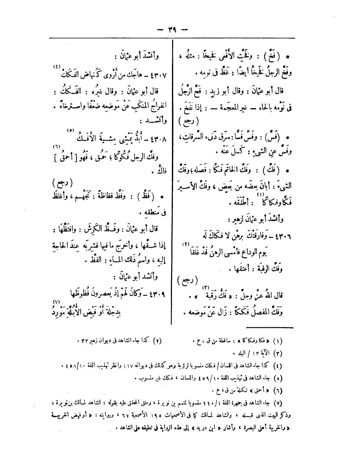 (¬5) جاء الشاهد فى تهذيب اللغة 10/ 459 واللسان، فكك غير منسوب.