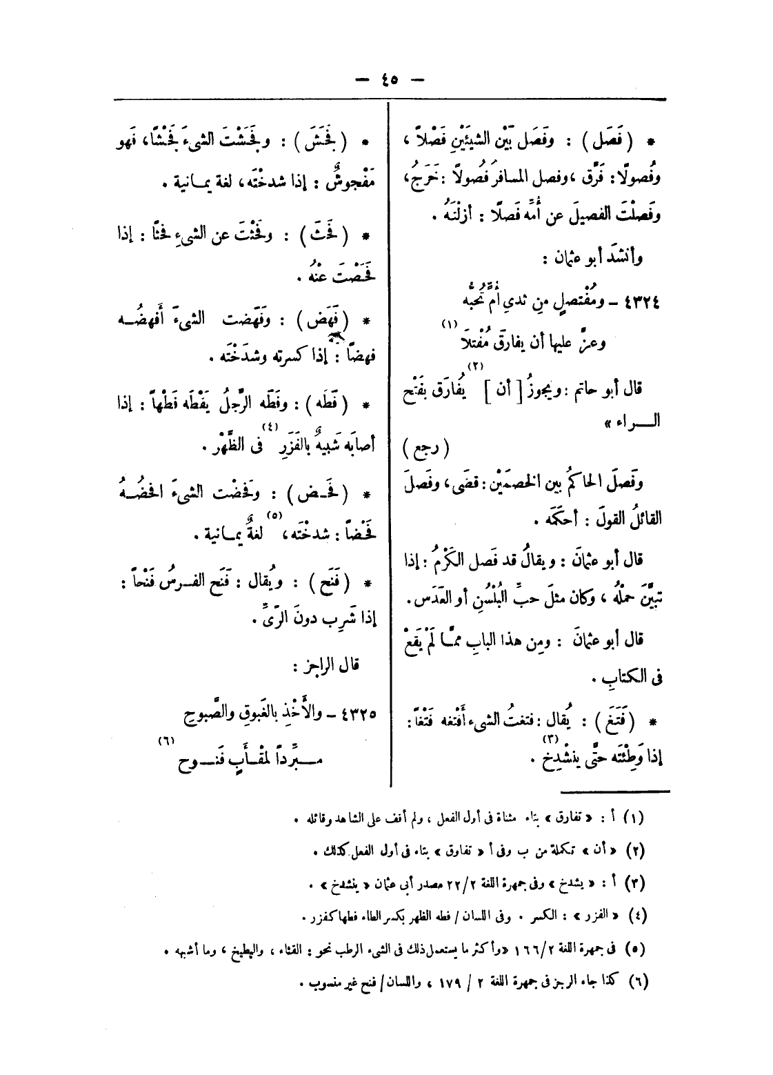 (¬6) كذا جاء الرجز فى جمهرة اللغة 2/ 179، واللسان/ فنح غير منسوب.