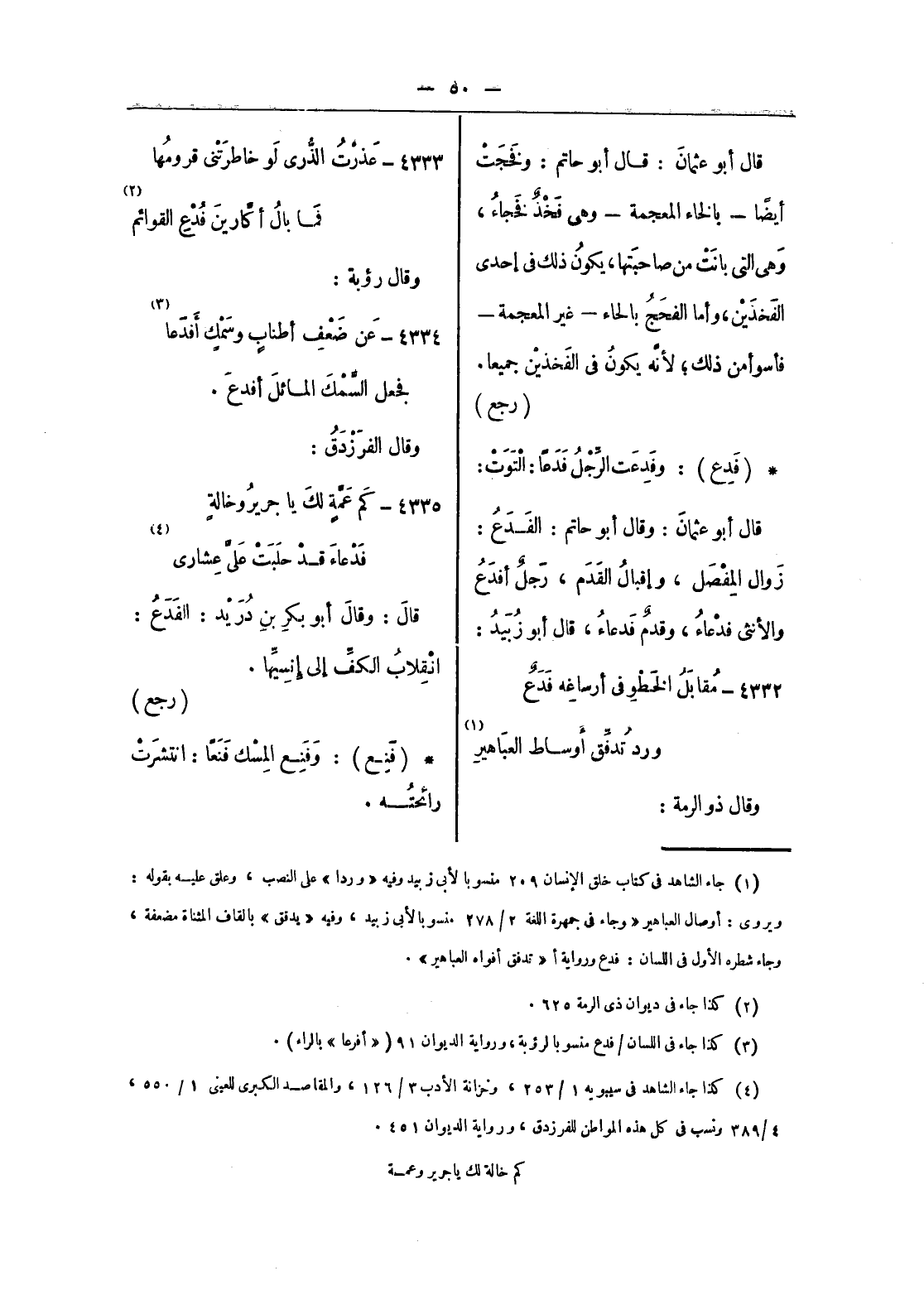 (¬3) كذا جاء فى اللسان/ فدع منسوبا لرؤبة، ورواية الديوان 91 («أفرعا» بالراء).
