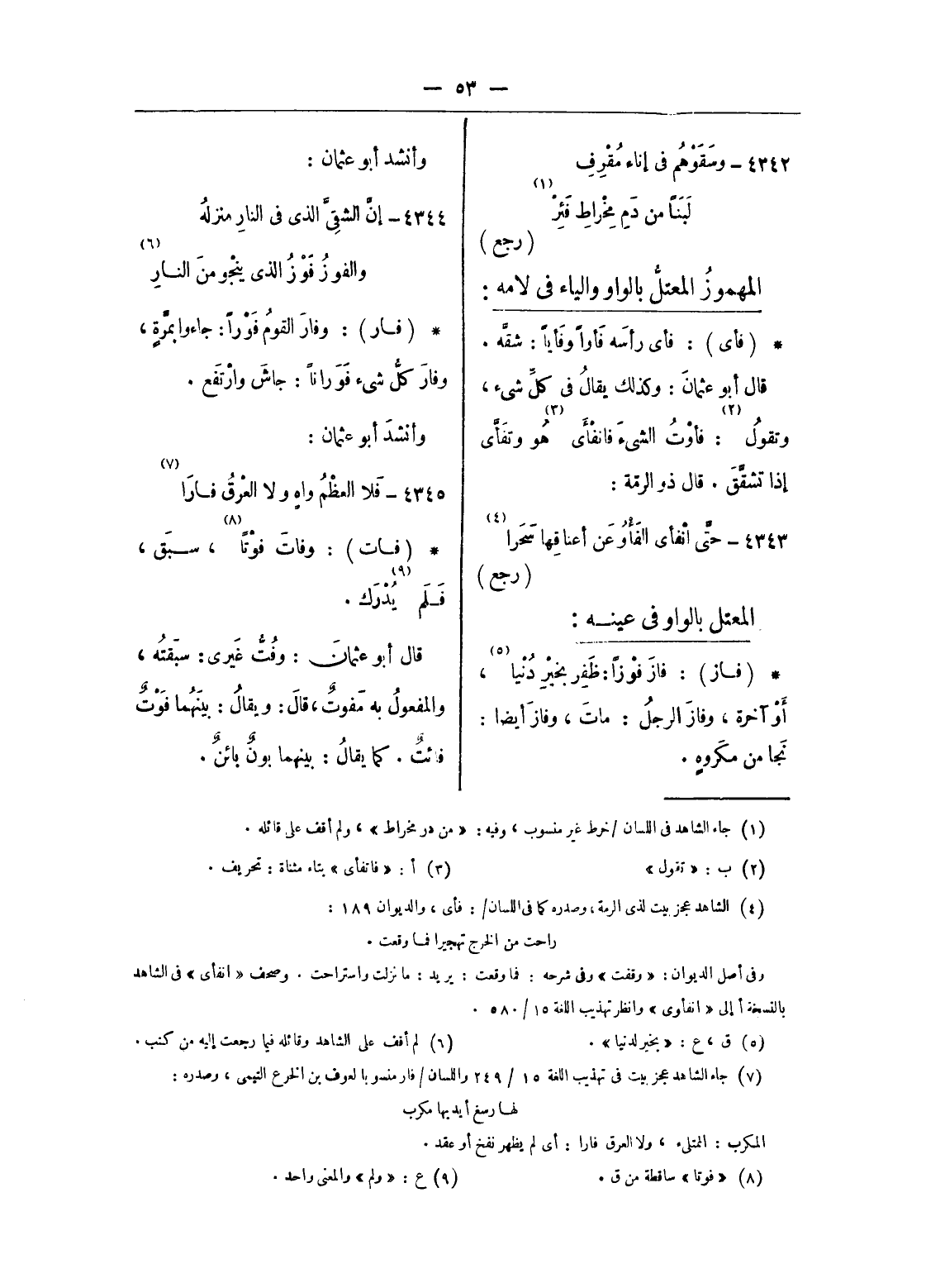 قال أبو عثمان: وكذلك يقال فى كلّ شئ، وتقول (¬2): فأوت الشئ فانفأى (¬3) هو وتفأّى إذا تشقّق. قال ذو الرّمة: