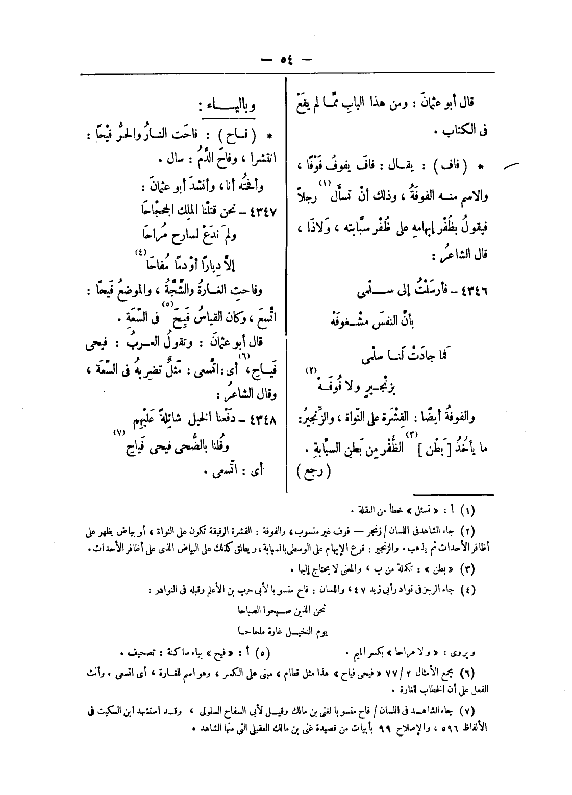 (¬6) مجمع الأمثال 2/ 77 «فيحى فياح» هذا مثل قطام، مبنى على الكسر، وهو اسم للغارة، أى اتسعى، وأنث الفعل على أن الخطاب للغارة.