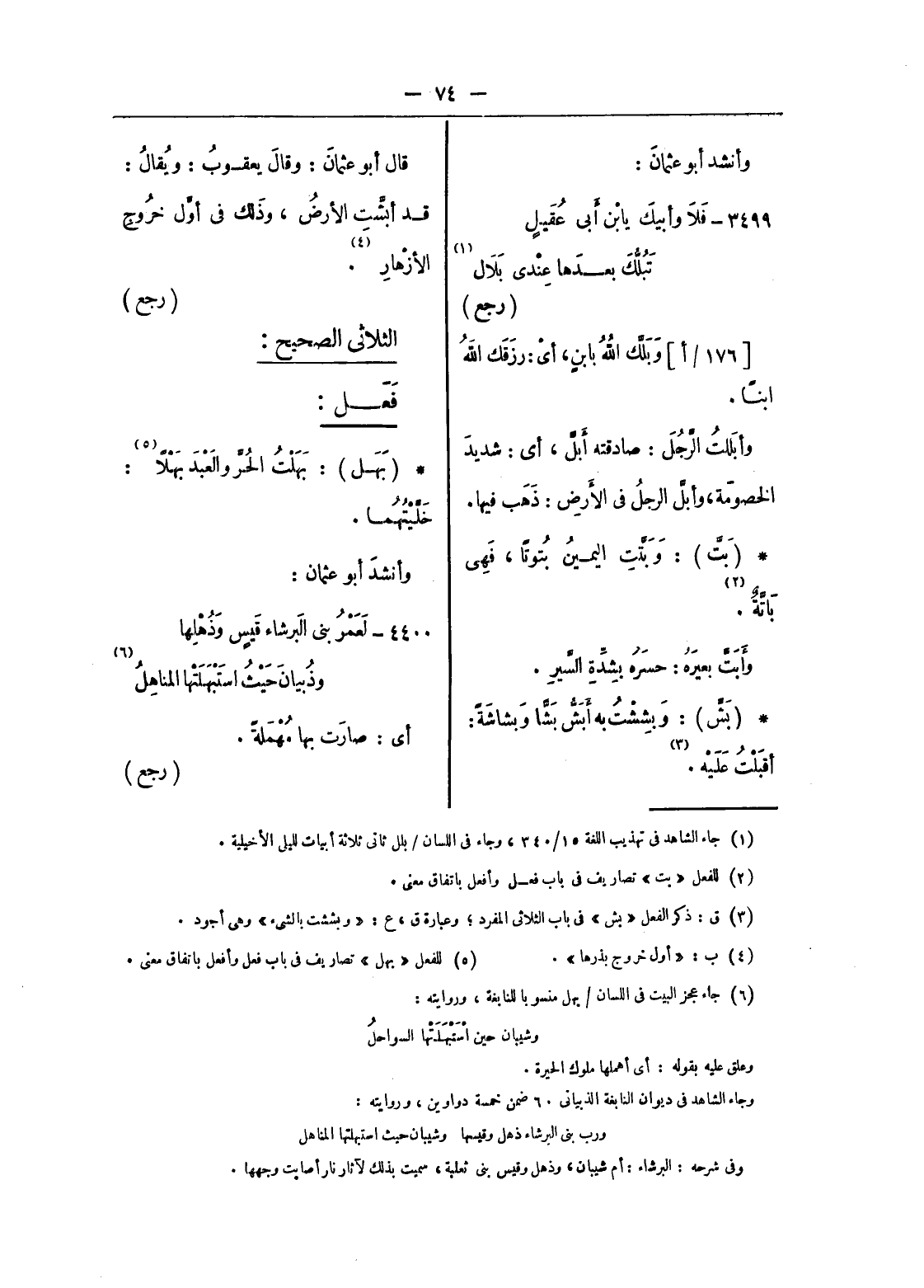 (¬5) للفعل «بهل» تصاريف فى باب فعل وأفعل باتفاق معنى.