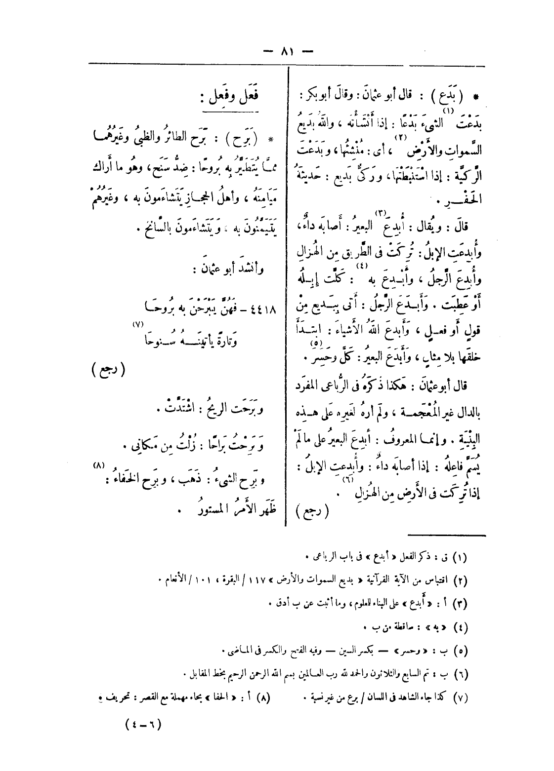 (¬1) ق: ذكر الفعل «أبدع» فى باب الرباعى.