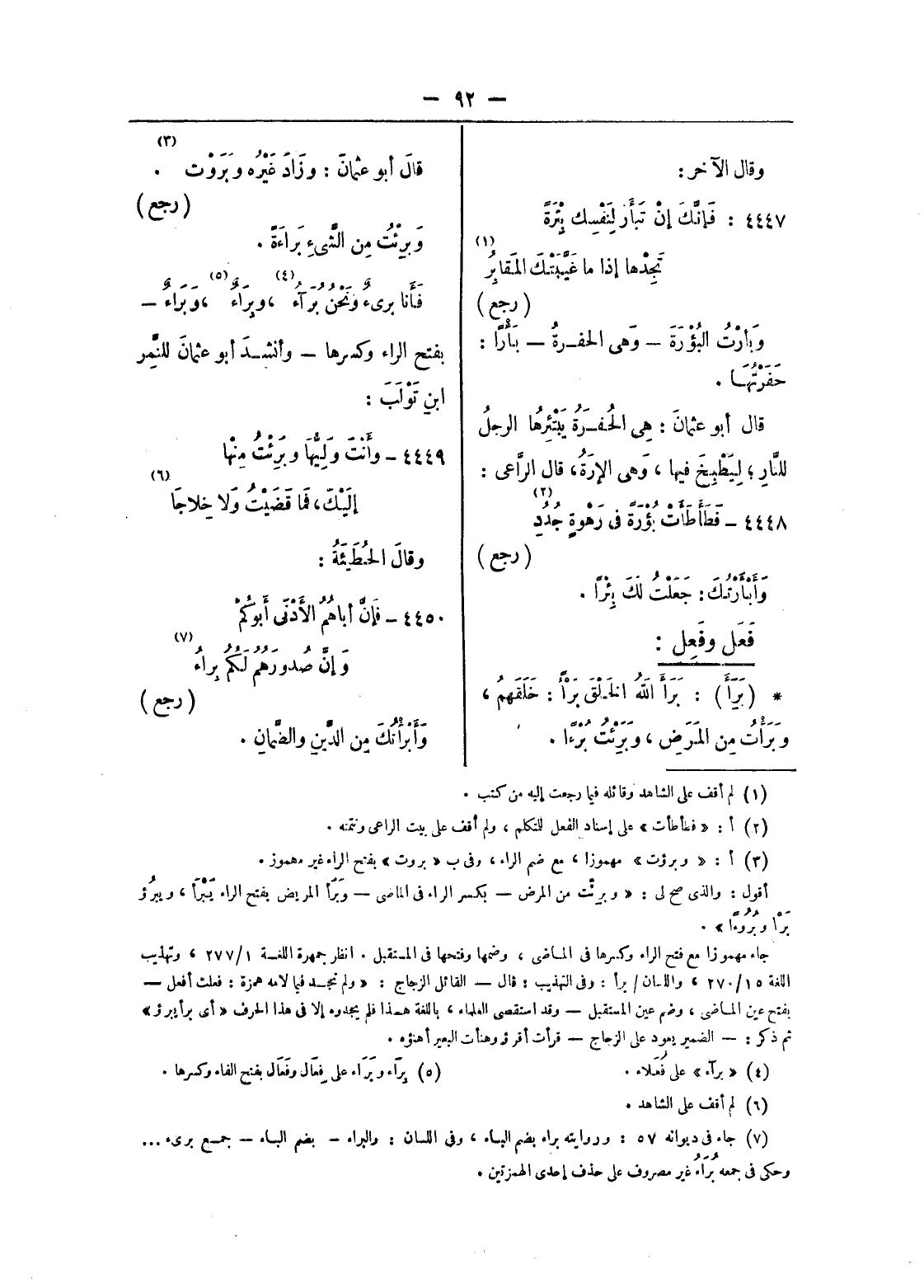 (¬7) جاء فى ديوانه 57: وروايته براء بضم الباء، وفى اللسان: والبراء - بضم الباء - جمع برئ ...