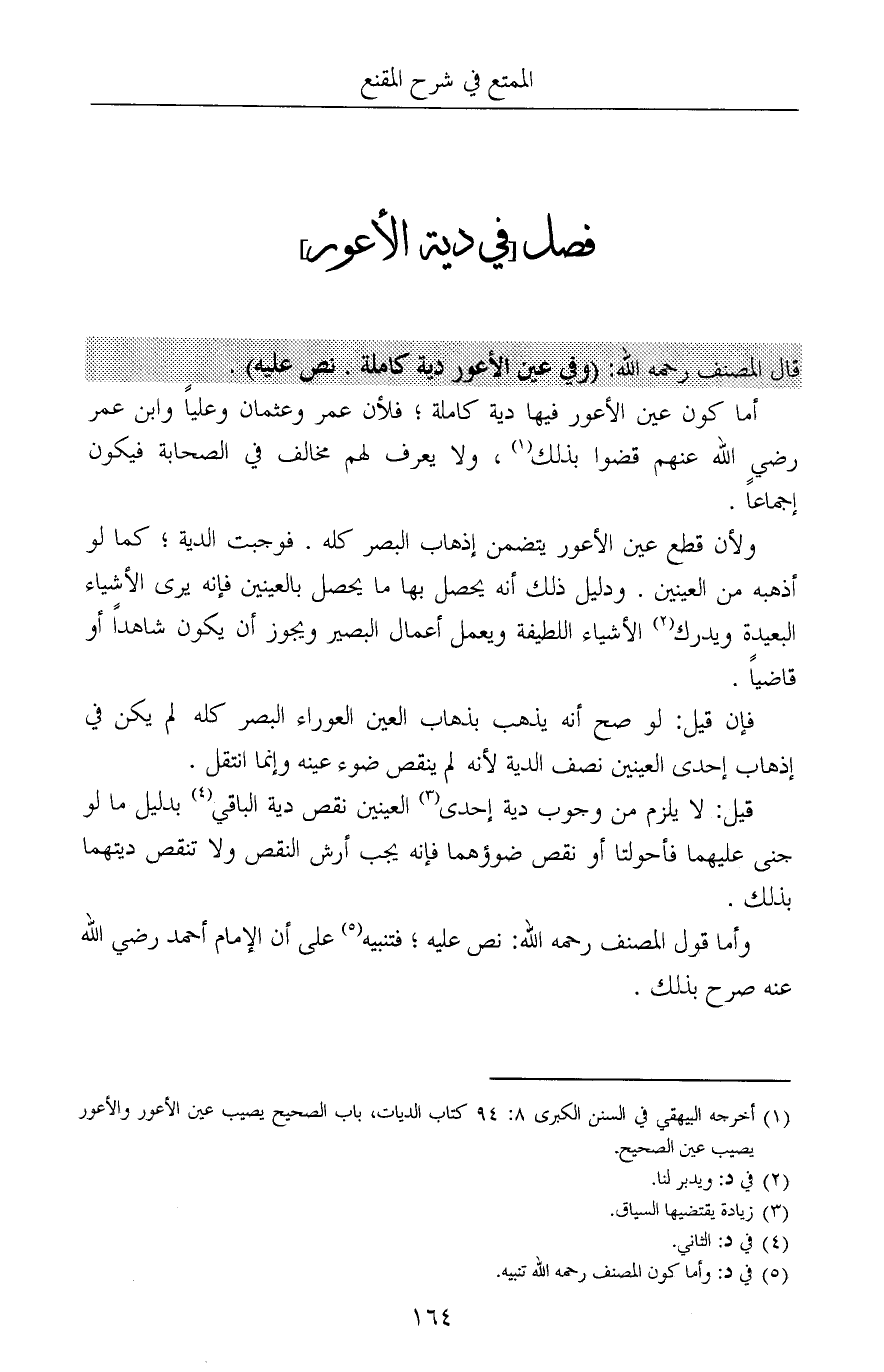 (¬1) أخرجه البيهقي في السنن الكبرى 8: 94 كتاب الديات، باب الصحيح يصيب عين الأعور والأعور يصيب عين الصحيح.
