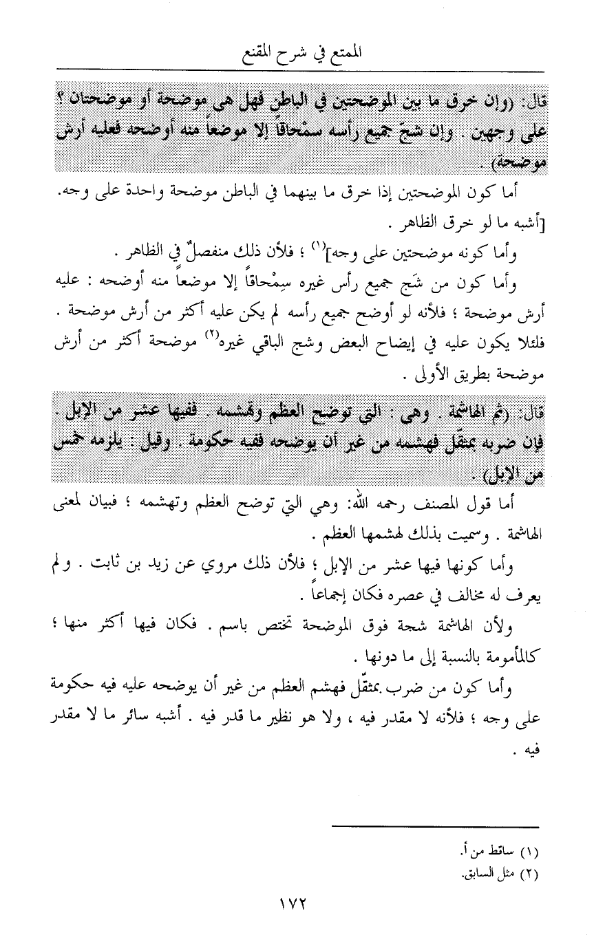 قال: (ثم الهاشمة. وهي: التي توضح العظم وتهشمه. ففيها عشر من الإبل. فإن ضربه بمثقّل فهشمه من غير أن يوضحه ففيه حكومة. وقيل: يلزمه خمس من الإبل).