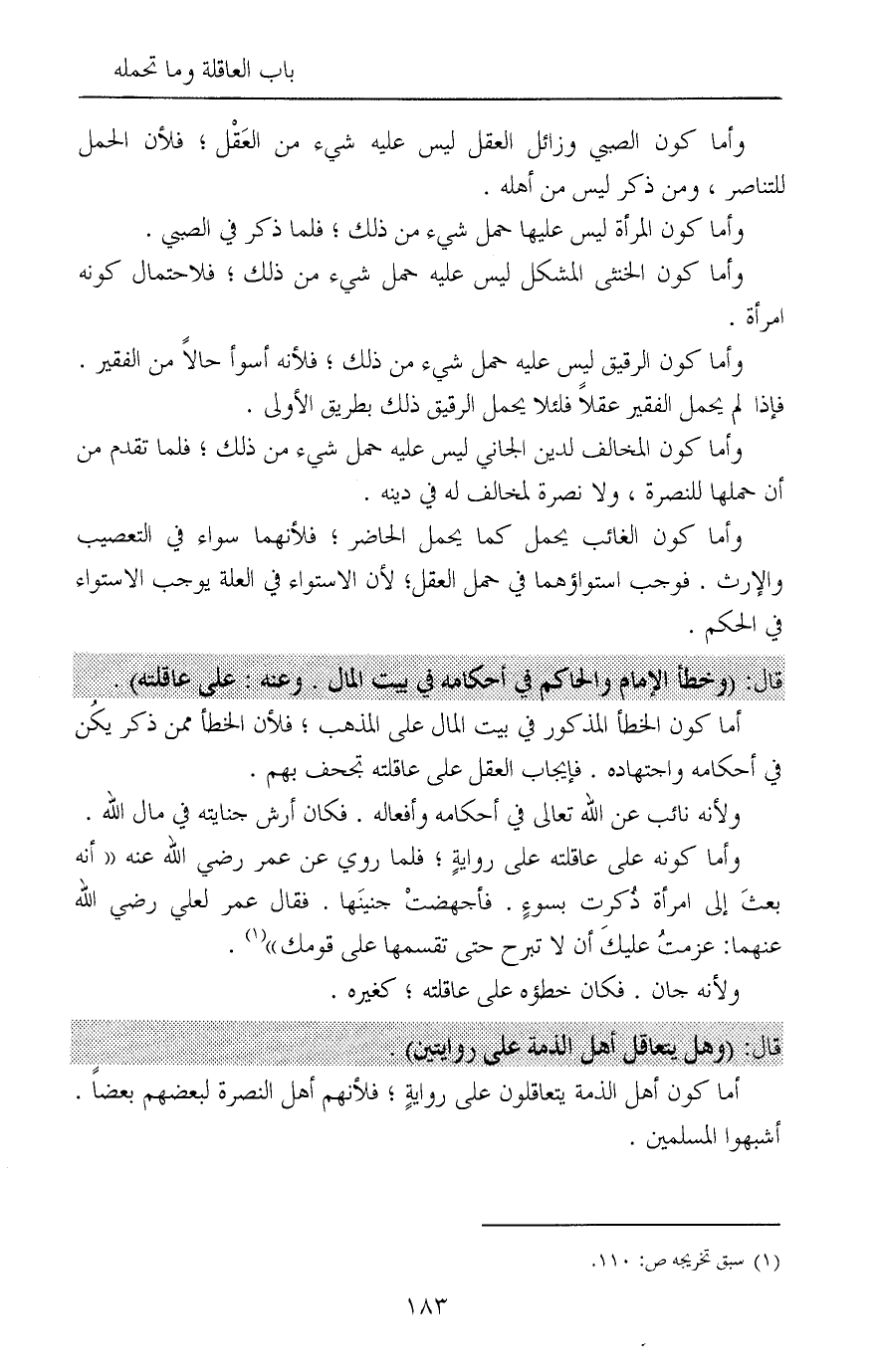 أما كون أهل الذمة يتعاقلون على روايةٍ؛ فلأنهم أهل النصرة لبعضهم بعضاً. أشبهوا المسلمين.