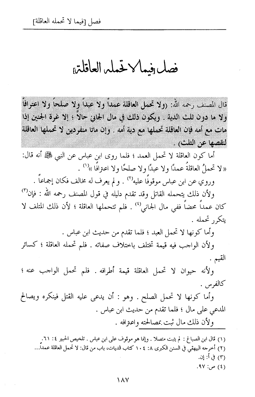 (¬2) أخرجه البيهقي في السنن الكبرى 8: 104 كتاب الديات، باب من قال: لا تحمل العاقلة عمداً ...