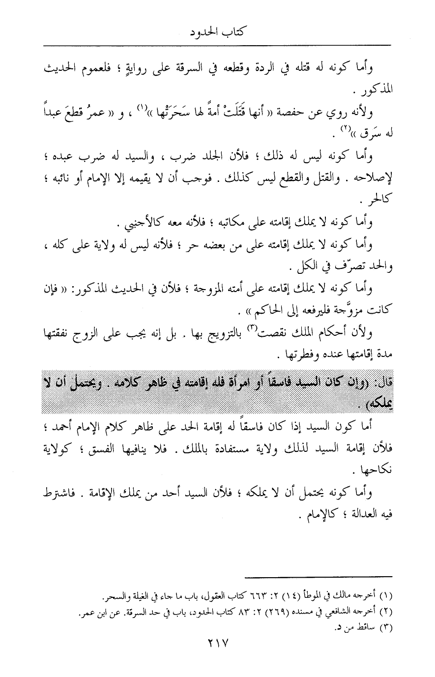 وأما كونه لا يملك إقامته على أمته المزوجة؛ فلأن في الحديث المذكور: «فإن كانت مزوَّجة فليرفعه إلى الحاكم».