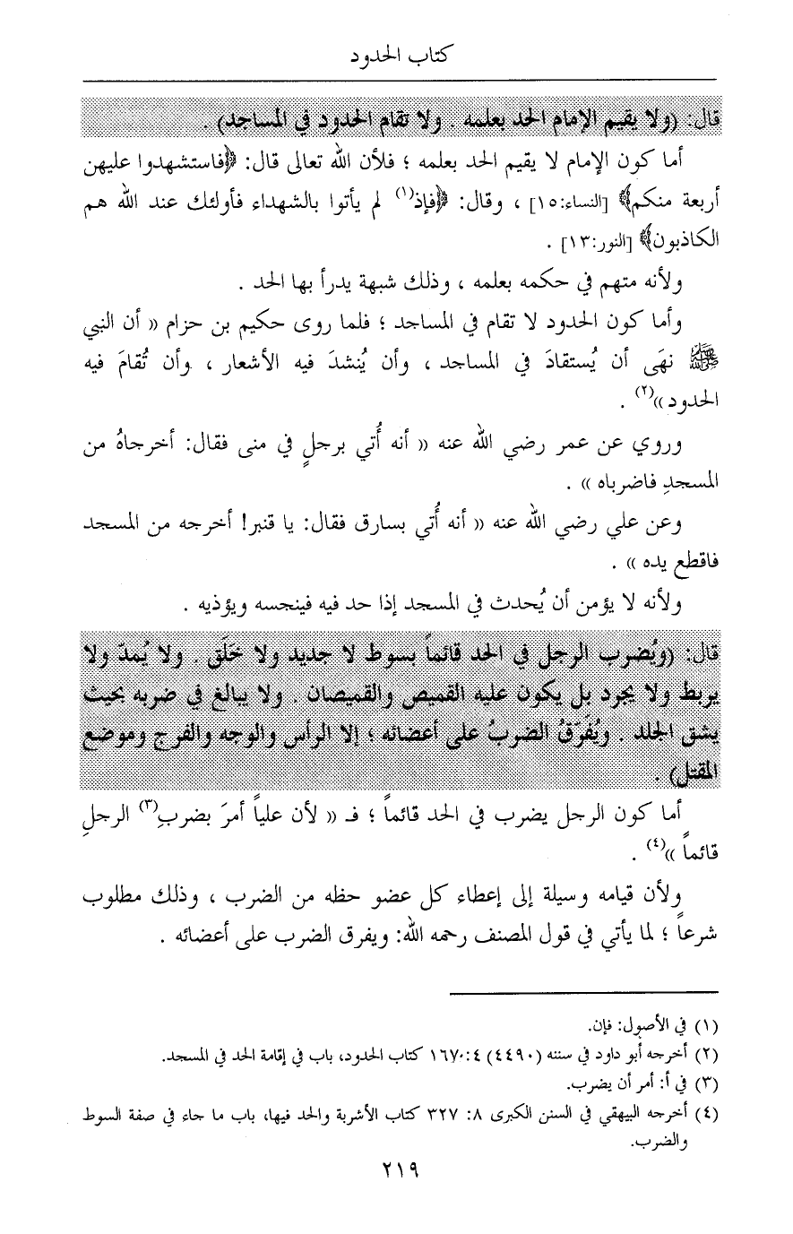(¬2) أخرجه أبو داود في سننه (4490) 4: 167 كتاب الحدود، باب في إقامة الحد في المسجد.