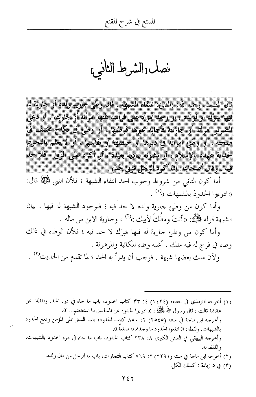 أما كون الثاني من شروط وجوب الحد انتفاء الشبهة؛ فلأن النبي صلى الله عليه وسلم قال: «ادرءوا الحدودَ بالشبهات» (¬1).