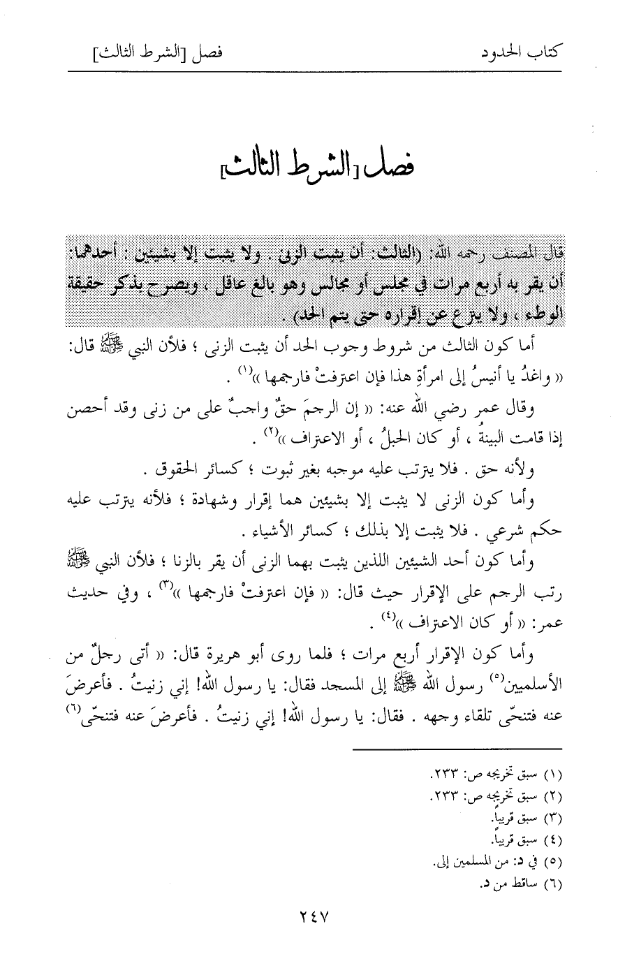 أما كون الثالث من شروط وجوب الحد أن يثبت الزنى؛ فلأن النبي صلى الله عليه وسلم قال: «واغدُ يا أنيسُ إلى امرأةِ هذا فإن اعترفتْ فارجمها» (¬1).