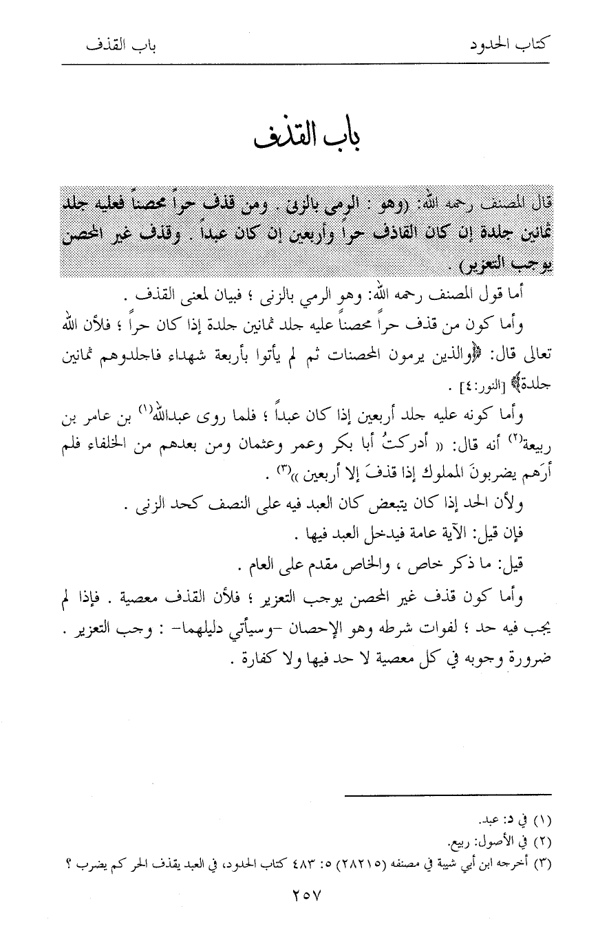 (¬3) أخرجه ابن أبي شيبة في مصنفه (28215) 5: 483 كتاب الحدود، في العبد يقذف الحر كم يضرب؟