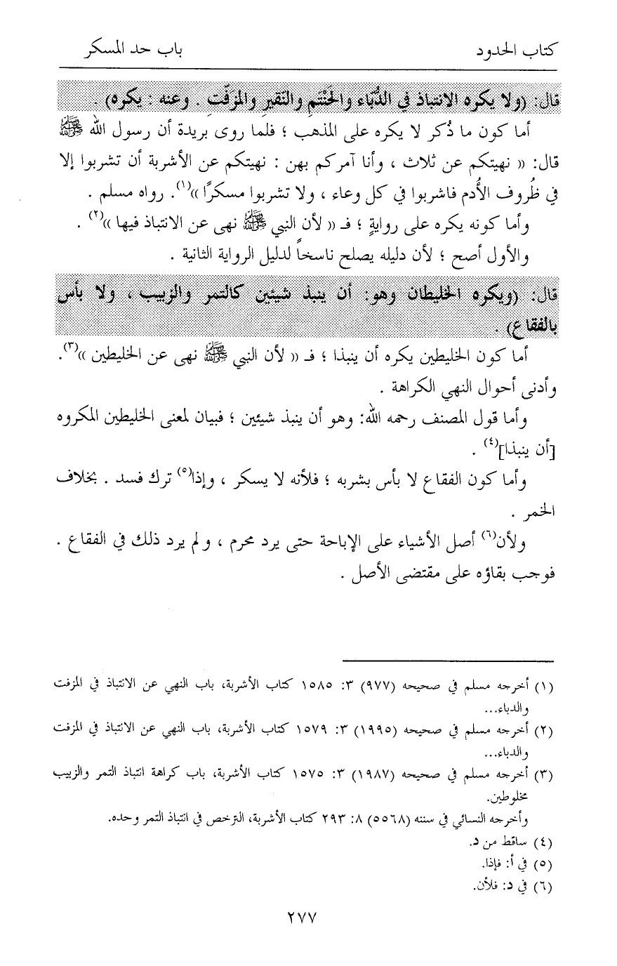 (¬1) أخرجه مسلم في صحيحه (977) 3: 1585 كتاب الأشربة، باب النهي عن الانتباذ في المزفت والدباء ...