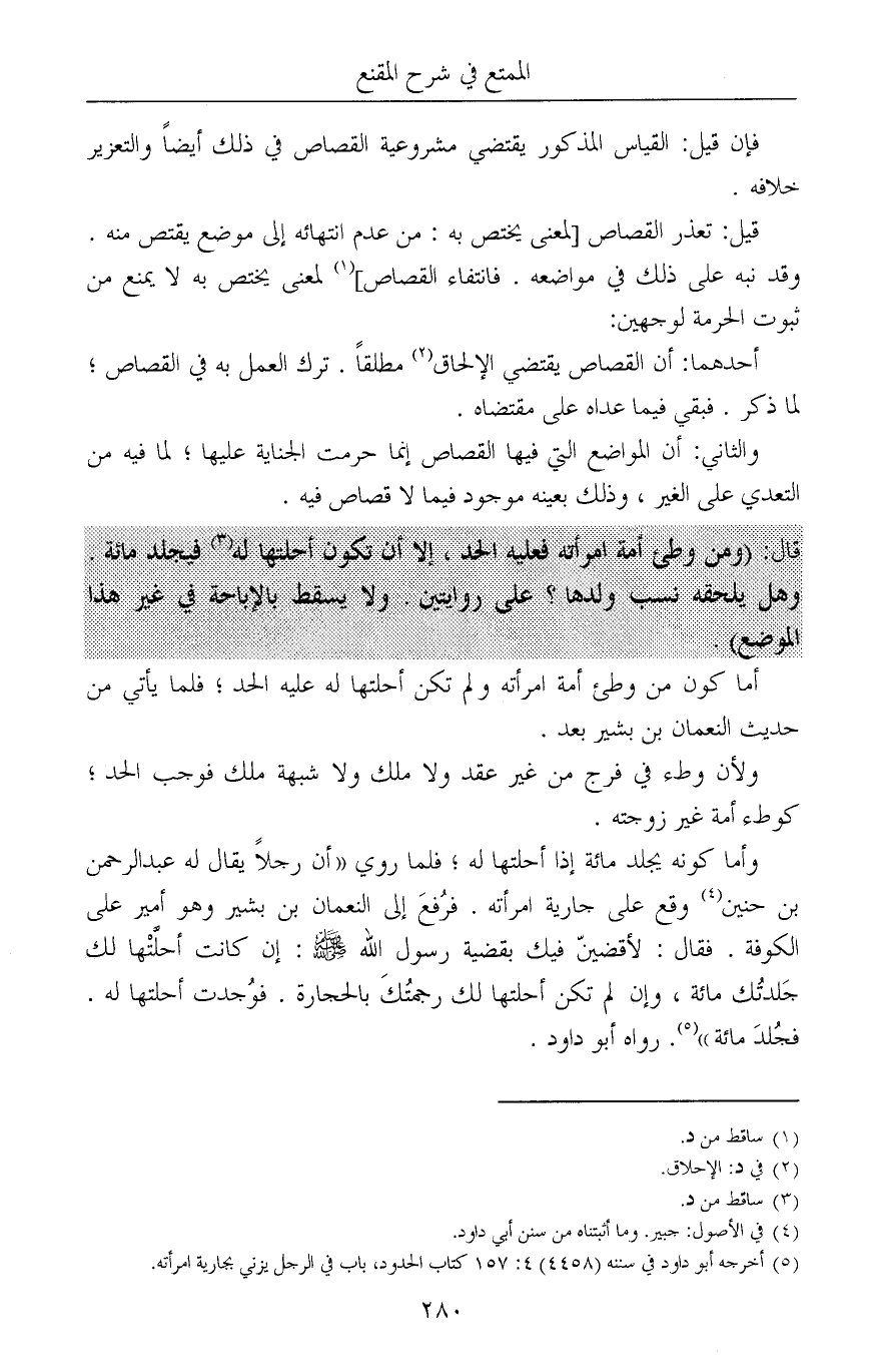 (¬5) أخرجه أبو داود في سننه (4458) 4: 157 كتاب الحدود، باب في الرجل يزني بجارية امرأته.