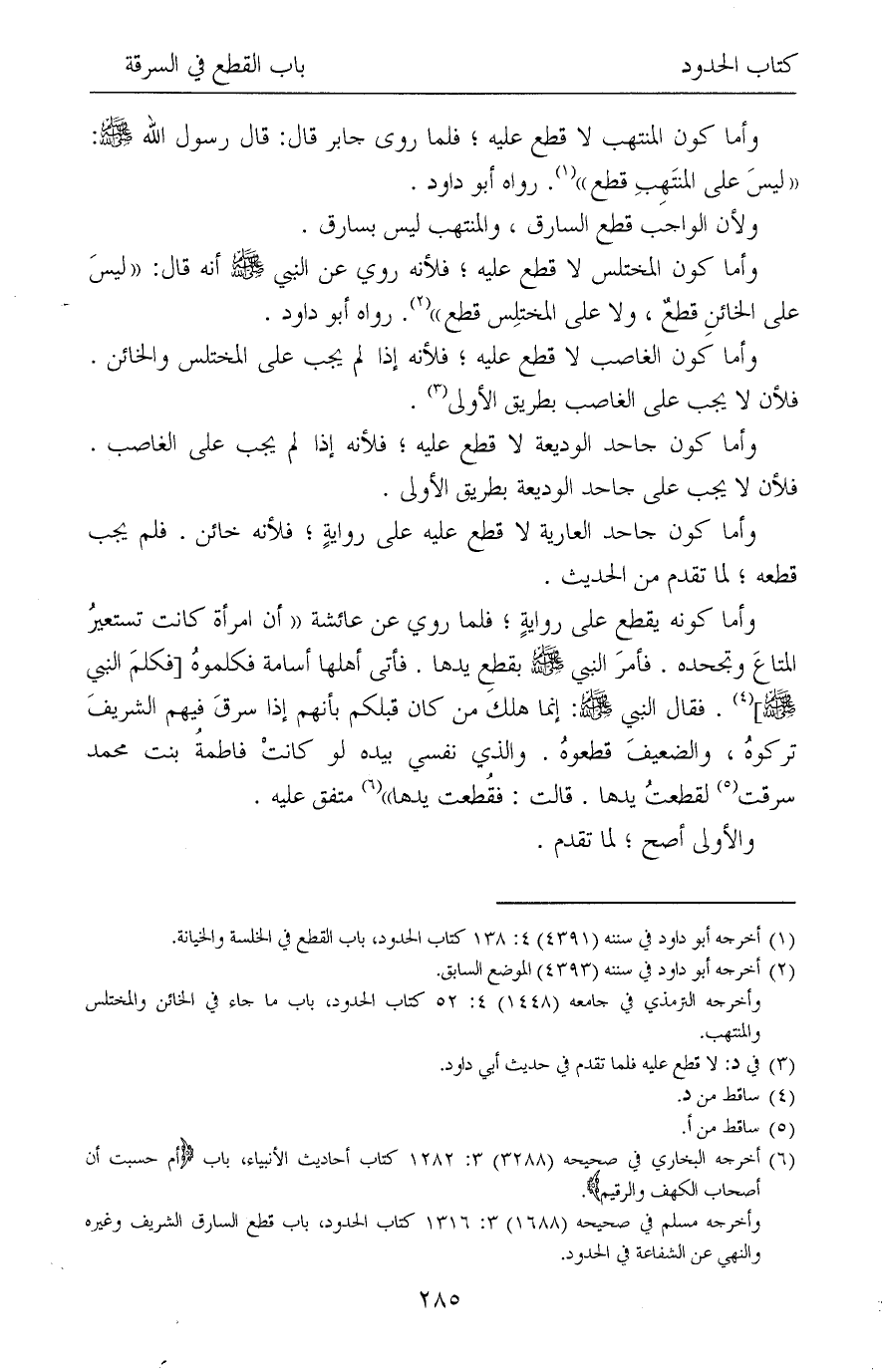(¬1) أخرجه أبو داود في سننه (4391) 4: 138 كتاب الحدود، باب القطع في الخلسة والخيانة.