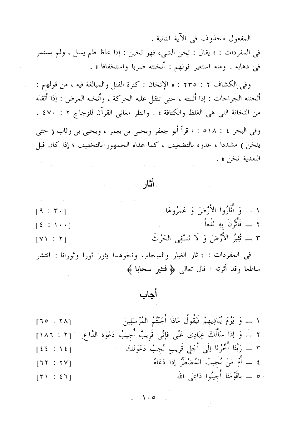 وفي البحر 4: 518: «قرأ أبو جعفر ويحيى بن يعمر، ويحيى بن وثاب (حتى يثخن) مشددًا، عدوه بالتضعيف، كما عداه الجمهور بالتخفيف؛ إذا كان قبل التعدية ثخن».