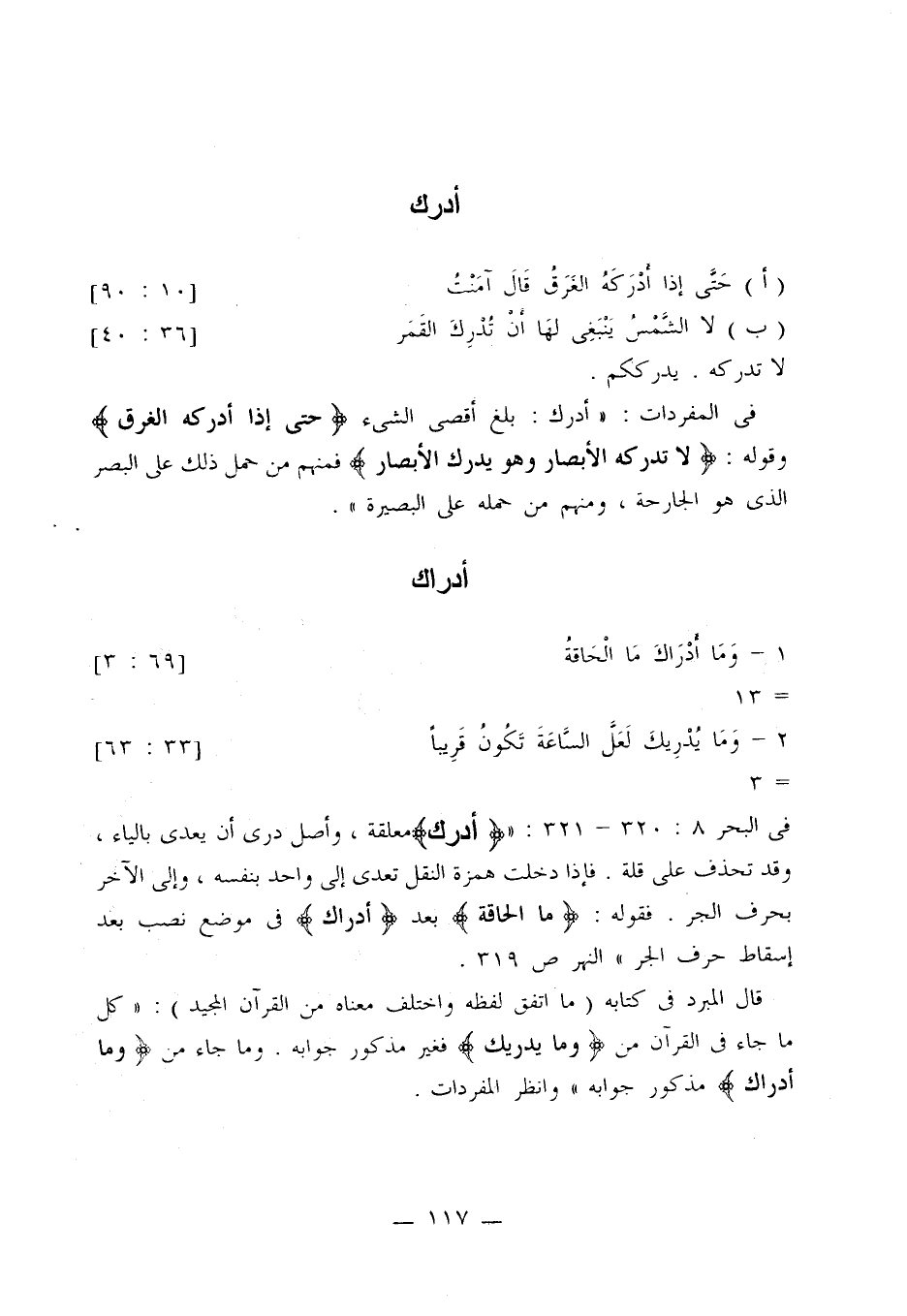 في المفردات: «أدرك: بلغ أقصى الشيء {حتى إذا أدركه الغرق} وقوله: {لا تدركه الأبصار وهو يدرك الأبصار} فمنهم من حمل ذلك على البصر الذي هو الجارحة، ومنهم من حمله على البصيرة».