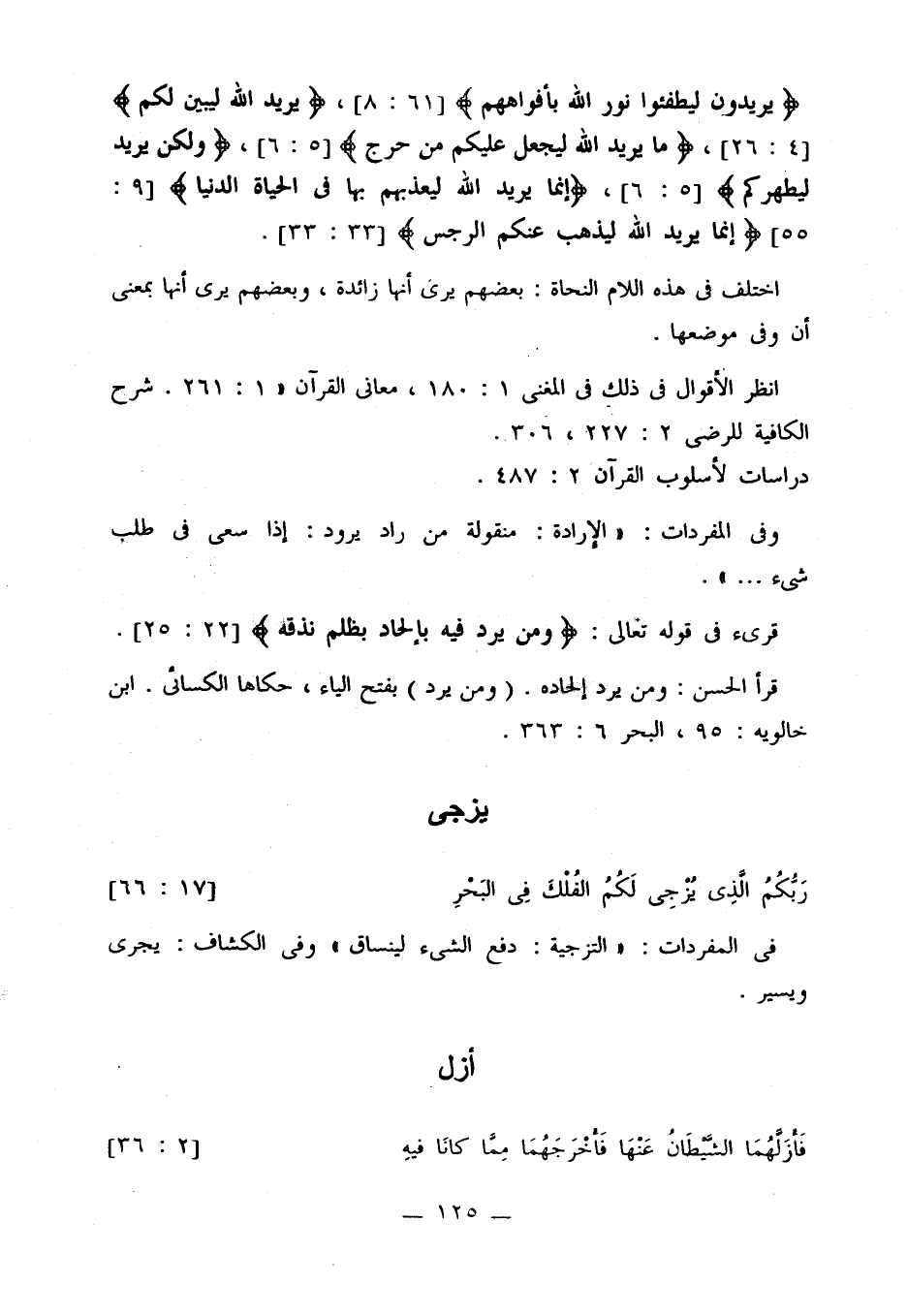 {يريدون ليطفئوا نور الله بأفواههم} [61: 8]، {يريد الله ليبين لكم} [4: 26]، {ما يريد الله ليجعل عليكم من حرج} [5: 6]، {ولكن يريد ليطهركم} [5: 6]، {إنما يريد الله ليعذبهم بها في الحياة الدنيا} [9: 55] {إنما يريد الله ليذهب عنكم الرجس} [33: 33].