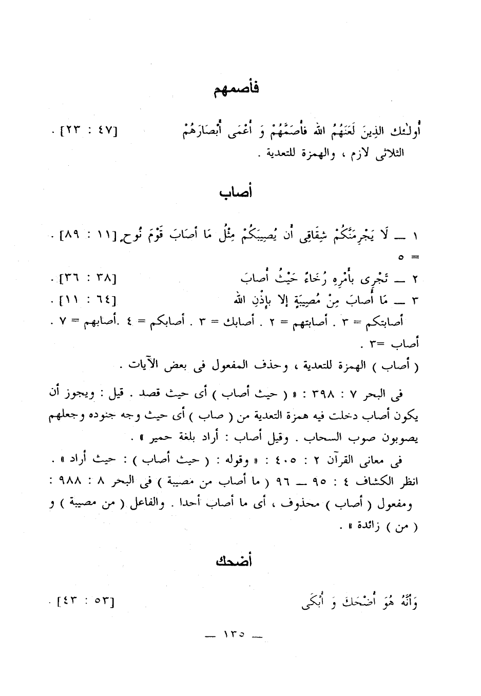 في معاني القرآن 2: 405: «وقوله: (حيث أصاب): حيث أراد». انظر الكشاف 4: 95 - 96 (ما أصاب من مصيبة) في البحر 8: 988: ومفعول (أصاب) محذوف، أي ما أصاب أحدًا. والفاعل (من مصيبة) و (من) زائدة.