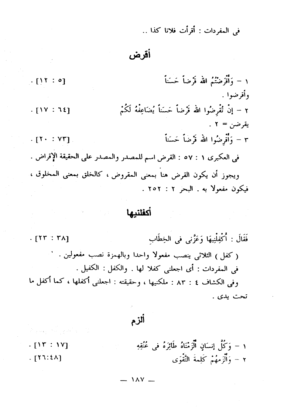 في العكبري 1: 57: القرض اسم للمصدر والمصدر على الحقيقة الإقراض.
