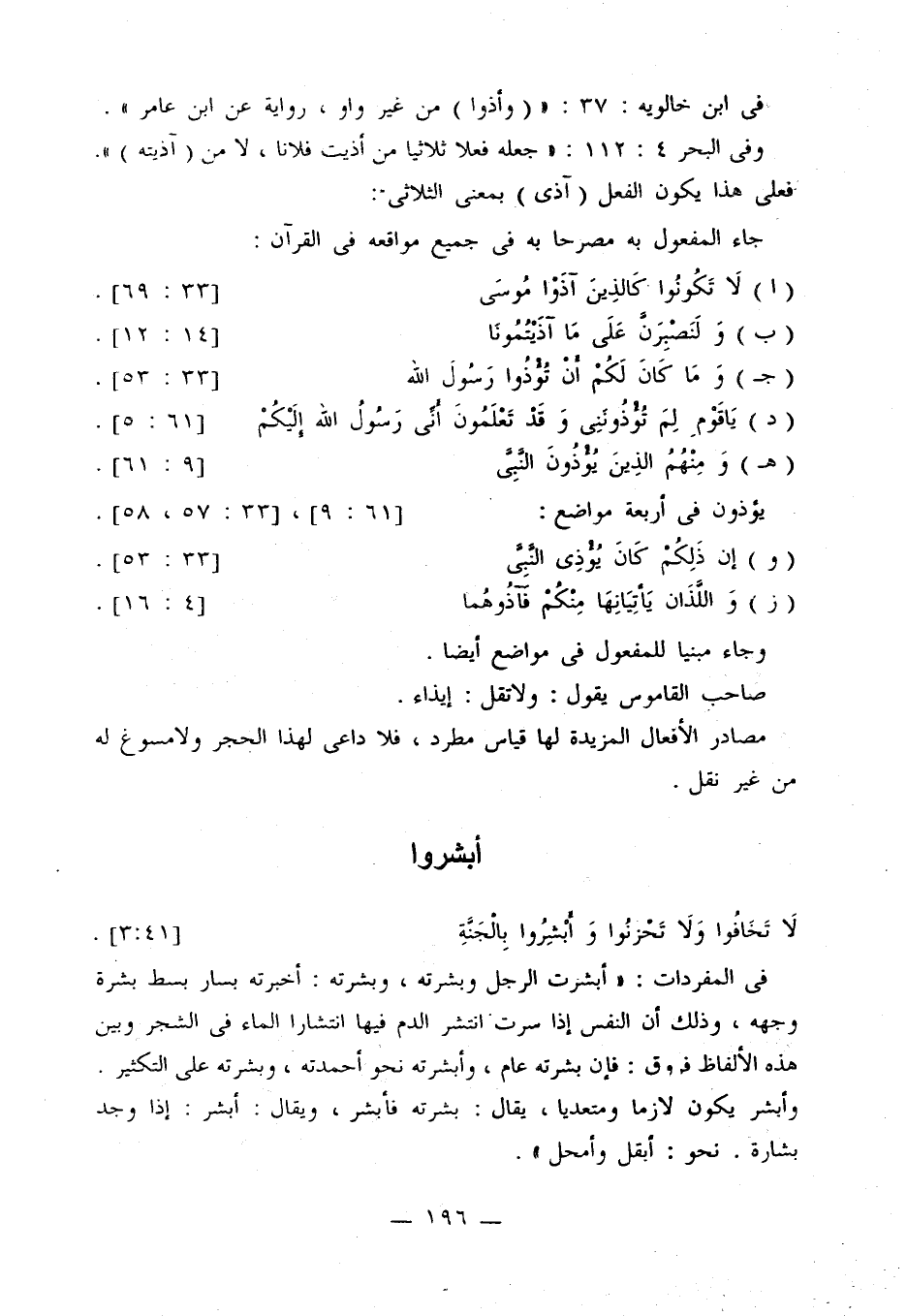 وفي البحر 4: 112: «جعله فعلا ثلاثيا من أذيت فلانا، لا من (آذيته)». فعلى هذا يكون الفعل (آذى) بمعنى الثلاثي:
